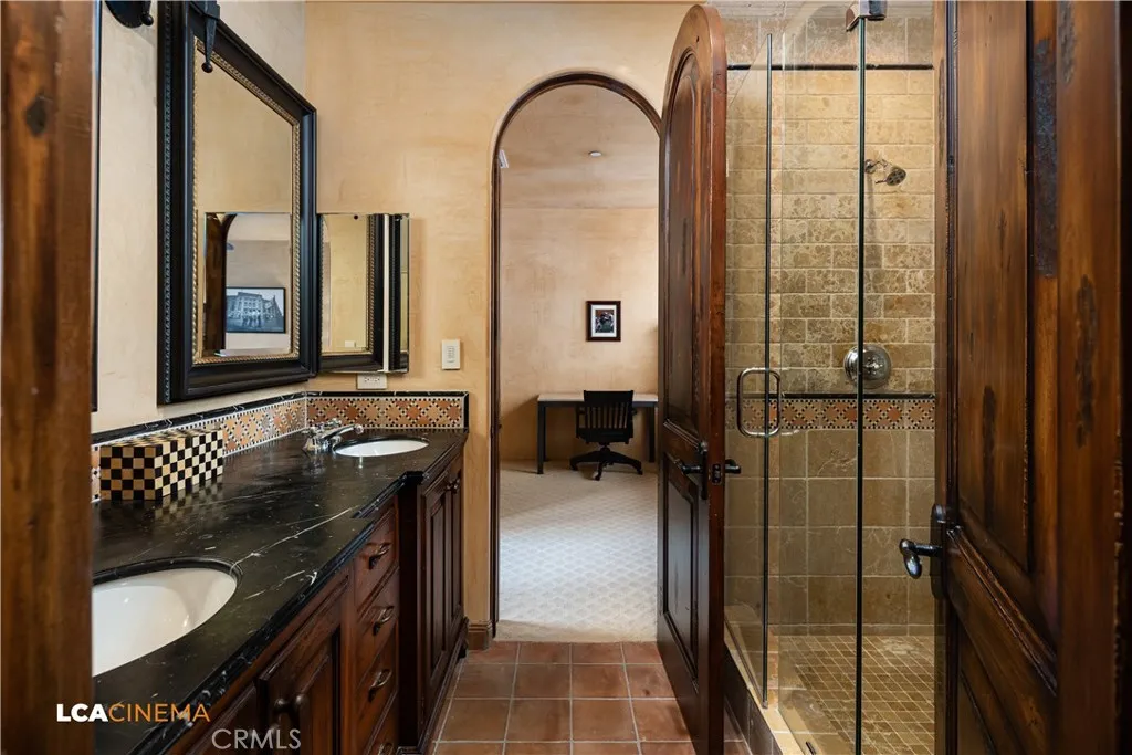 This stunning Spanish Colonial home located on the Seven Oaks Golf Course is within the finest enclave of homes in Bakersfield. A Santa Barbara design inspired by the original and only owner is a true one-of-a-kind masterpiece. This property features custom craftsmanship and meticulously chosen materials throughout. Upon entering, you're greeted by a grand staircase and a foyer leading into the courtyard featuring a Spanish fountain. Moving into the heart of the home, the kitchen offers both beauty and functionality boasting an oversized island, Viking appliances, double ovens, and a spacious butlers pantry. The luxurious primary bedroom displays an elegant fireplace and incredible his and her bathrooms and closets. Spacious bedrooms with two bedrooms bringing you the comfort of ensuites giving this home room for extended family. Hand-selected materials including handcrafted beams, Mexican Talavera tiles, cotto pavers, custom woodwork, hand painted murals, and unmatched detailing of the Spanish centric interior design gives this home its unique character. Designed for the ultimate entertaining experience, this home offers a grand living room with a stately fireplace, an upstairs library overlooking an entertainment bar with its own private entrance, and a majestic wine cellar in the homes basement. Outside the home is equally impressive as the property boasts golf course views, a pool, spa, multiple balconies, and a private entrance to the primary bedroom. A gated driveway and beautifully landscaped grounds complete this luxurious estate. Bathroom count is as follows: 2 ful