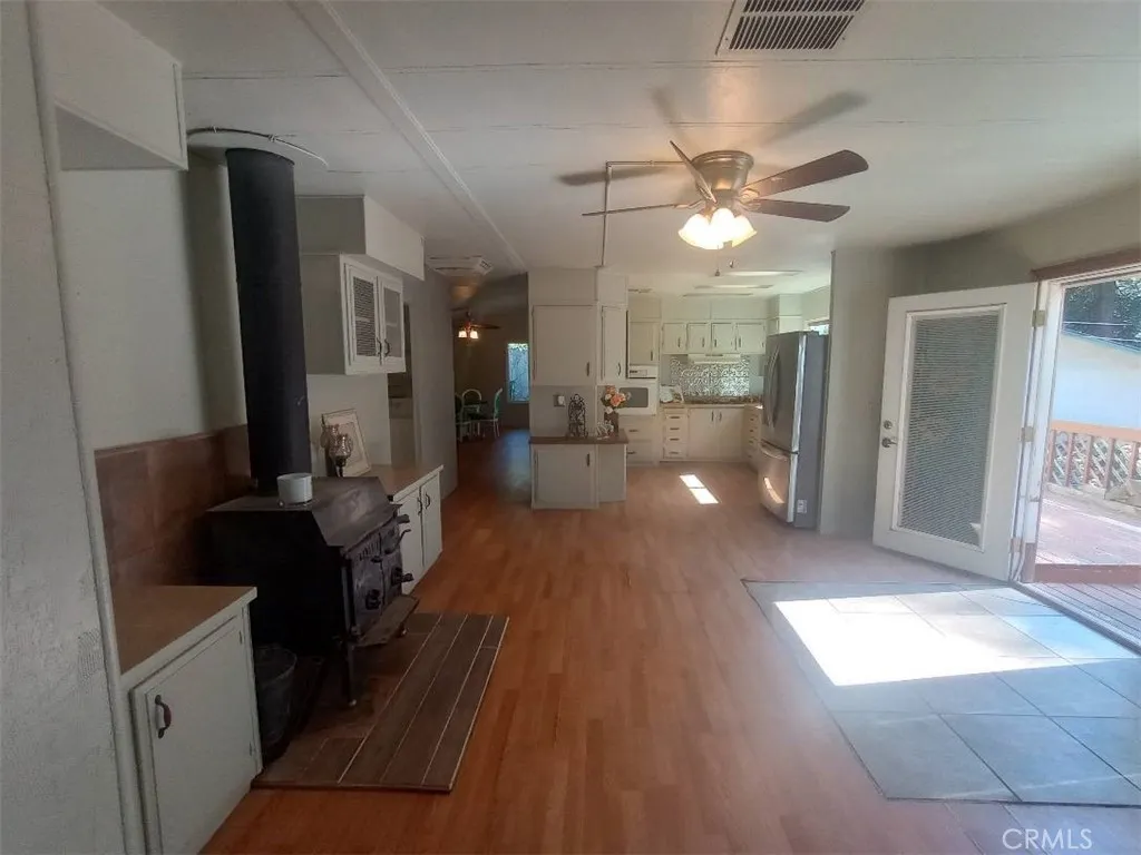 Discover the charm of mountain living in this 2-bedroom 2-bath home. This home features vaulted ceilings, a wood-burning stove, an oversized laundry room, and a built-in hutch for storage. The kitchen features a well-designed layout that opens to the main areas of the house. Unwind in the master suite, which includes a shower-in-tub design and plenty of storage space. Outside there is a beautiful wooden deck and a fully fenced-in yard. On this great sized lot, there are raised garden beds, waterspouts throughout the property, great pathways, and easy to maintain landscaping. There is a storage shed out back and an outbuilding in the front when you enter the driveway, the possibilities for use of that building are endless. This home is being sold as is and with a little TLC this will be the perfect place to call home! This property has the potential to shine bright. Take advantage of the affordable price and make this house a home that youll be proud of. With the cozy wood-burning stove, spacious backyard, and plenty of natural light, youll never want to leave.