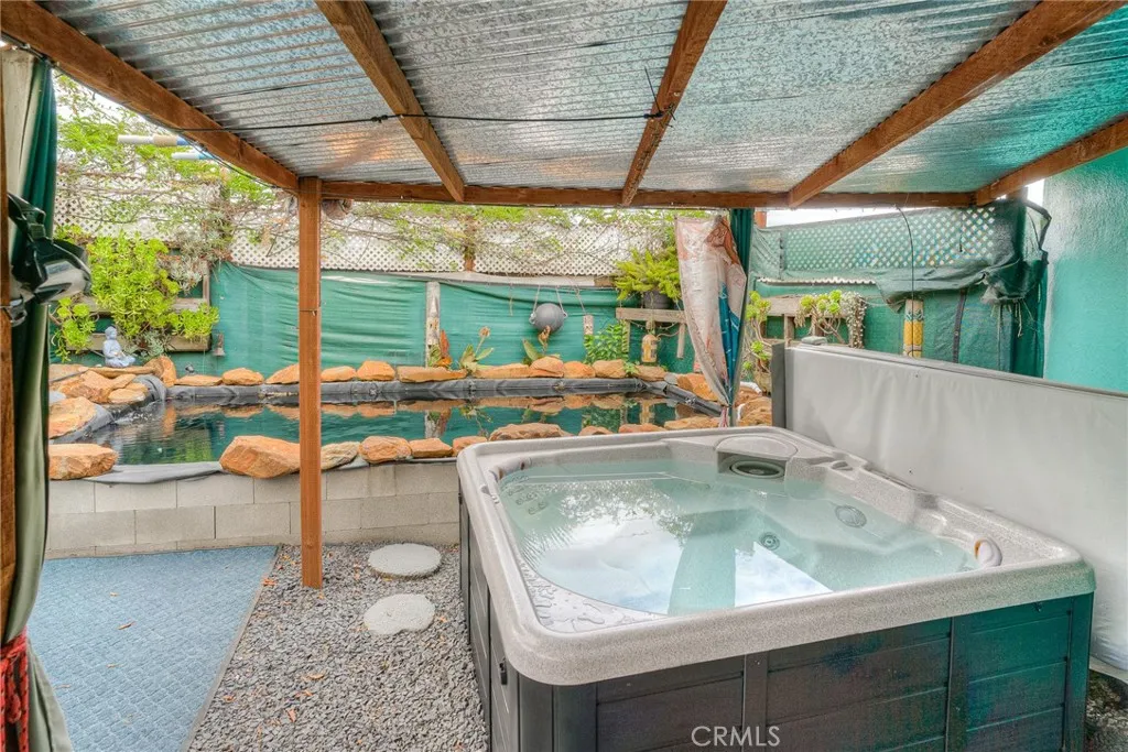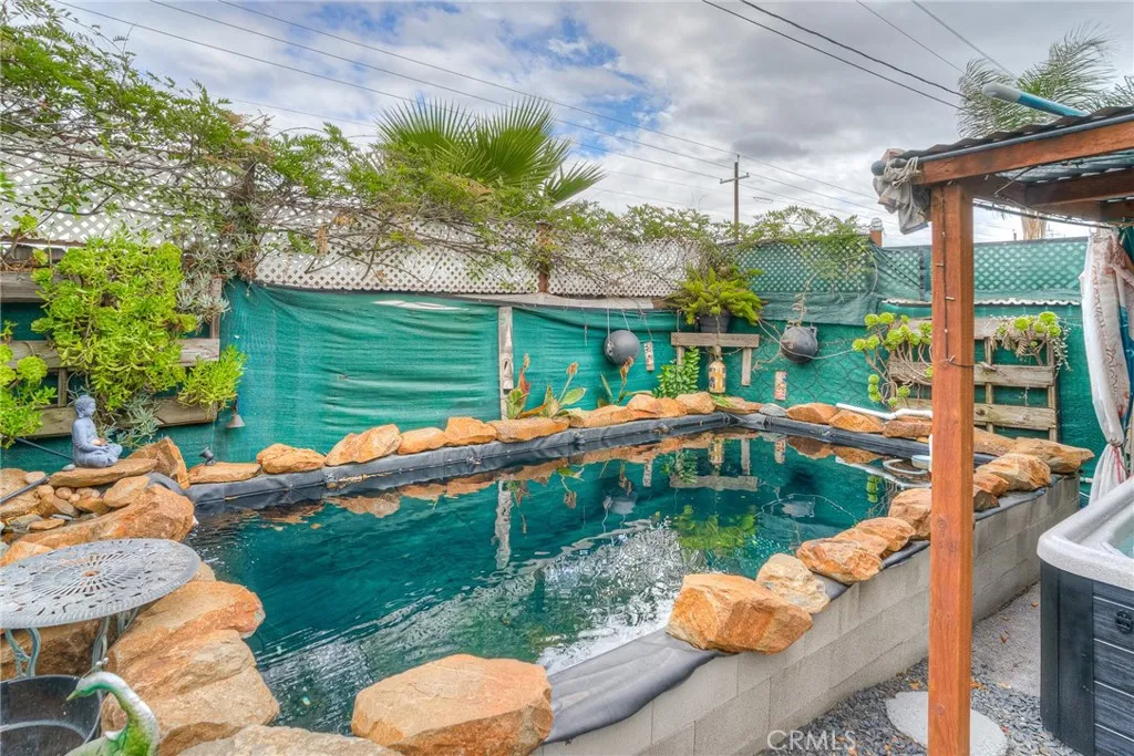Stunning 4-Bedroom Home with Resort-Style Amenities. Discover this beautifully restored 4-bedroom, 1-bathroom home, originally built in the 1920s. Blending timeless architectural character with contemporary upgrades, this residence exudes warmth, elegance, and attention to detail throughout. Interior features boast four spacious bedrooms with ample natural light, refined finishes, updated flooring throughout, modern kitchen with premium appliances, large walk-in pantry and chest freezer. Inviting living space is bright and perfect for entertaining. Enjoy having updated central heating and air conditioning, with the option to use evaporative cooling as well. The beautiful pellet stove offers peace of mind for those desiring ambient fire and consistent heat! The updated bathroom features stylish custom tile work. The primary bedroom is a sanctuary for calming the mind. The outside, private patio is ideal for reading, relaxing, meditating and a unique outdoor soaking bathtub surrounded by lush greenery. Expertly landscaped grounds with matures trees, palm trees, vibrant gardens, succulents and ground cover, a food forest from several garden areas and fruit trees, with a mature, loaded pomegranate tree. Glistening pool for summer enjoyment, luxurious hot tub for year-round relaxation, outdoor shower, ideal for rinsing off after a swim or jacuzzi. Generous patio and entertaining spaces for gathering with family and friends. Detached garage, meticulously renovated with quality finishes and ample attic storage. Charming curb appeal with a welcoming front porch, private backyard oa