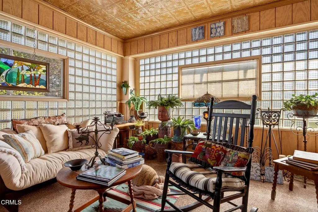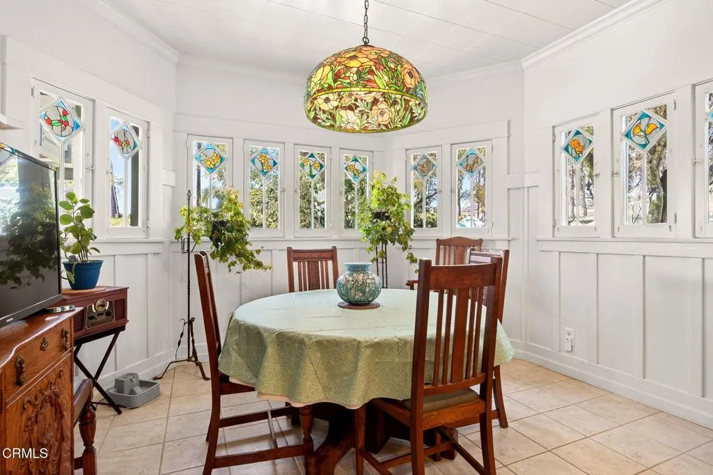 One of a Kind! This Charming 1912 Craftsman, offering 5 bedrooms 2 full and 2 half baths, 3487 sq ft of living space with a circular driveway, 3/car garage and extra work/craft room on a spacious 26,572 sq ft lot. Nestled behind a private gate this exceptional home combines classic character with generous living spaces.Inside you will find elegant custom crown molding, wainscoting, and wood beamed ceiling that highlight the homes craftsmanship. Many original doors and windows with beveled and stained glass. The open concept living and dining areas flow seamlessly complemented by built-in cabinetry with beautiful original wood details. Separate quest quarters, a beautiful glass block sunroom with tin ceiling and separate entrance from one of the covered porches.The beautifully remodeled kitchen has an eating area, and lots of pantry storage. Upstairs 3 spacious bedrooms, one with a balcony, offers comfort and flexibility for family, guests or home office needs. There is an assortment of fruit trees (including delicious avocados) and vegetation in the front and backyard. There may also be the potential for adding an ADU. This property provides a rare blend of privacy, space and timeless design, ideal for anyone seeking a classic Ventura residence with room to grow!
