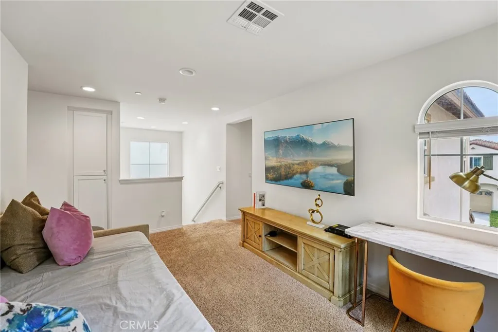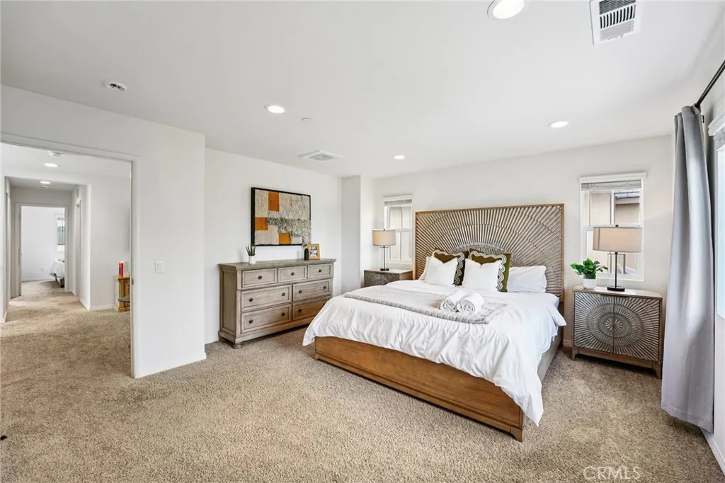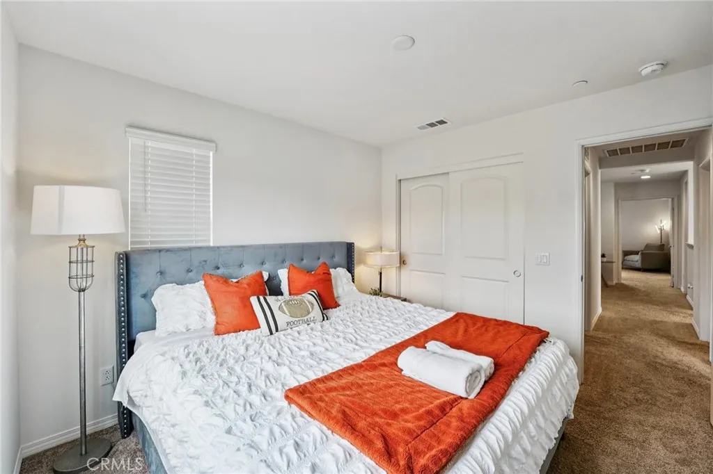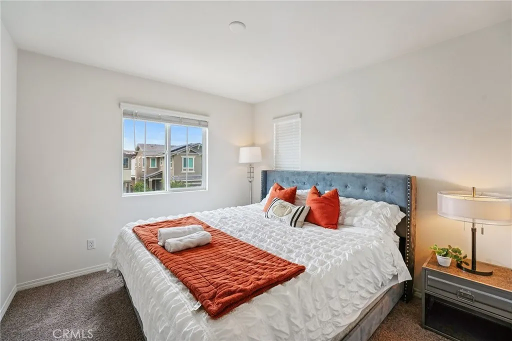 Welcome to this inviting 3-bedroom, 2.5-bathroom home located in a desirable gated community in North Fontana. The home features an open-concept living area, modern kitchen with stainless steel appliances, and a bright dining space. All bedrooms are located upstairs, including a spacious primary suite with dual sinks and a walk-in closet. The convenient upstairs laundry room adds extra ease and efficiency. Enjoy access to community amenities such as a sparkling pool, playground, and well-maintained common areas. The property also includes leased solar panels for energy efficiency and reduced utility costs. Conveniently situated near shopping centers, parks, and freeway access.
