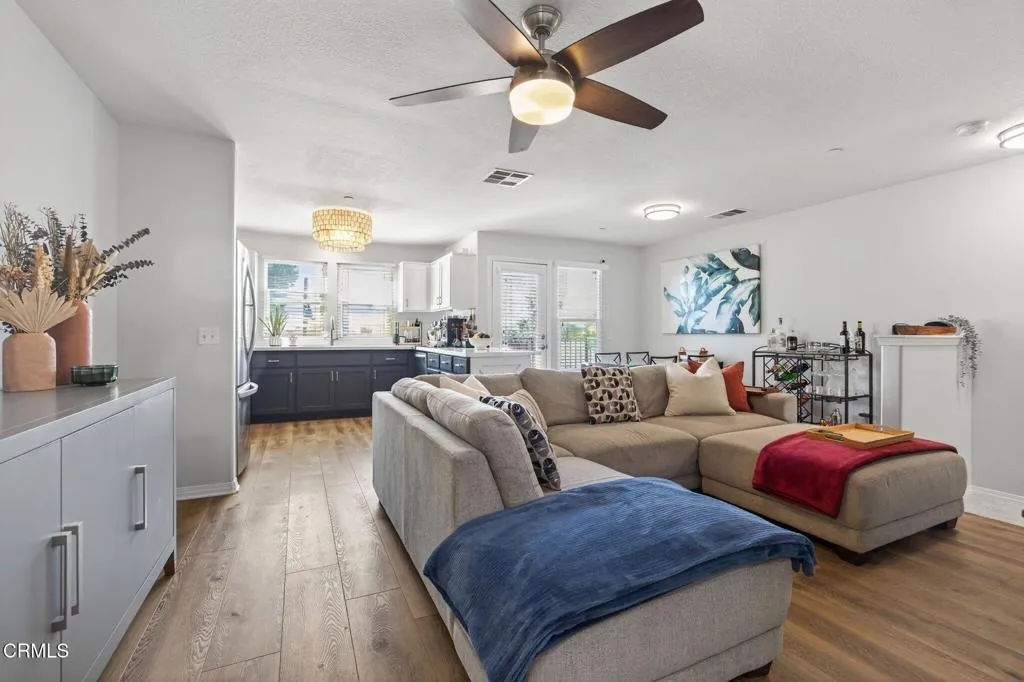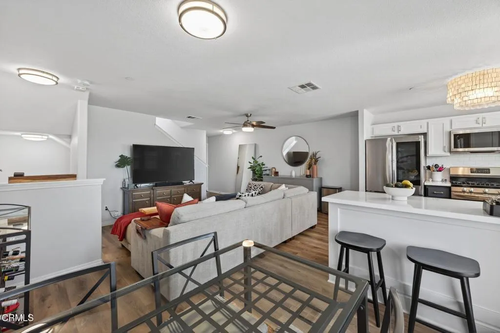 Welcome to 11218 Snapdragon, a rare opportunity in the highly sought-after Chapel Lane Courtyard community, where homes seldom come to market. This beautifully updated 2-bedroom, 2-bathroom condo offers just over 1,000 square feet of thoughtfully designed living space, complete with an attached private 2-car garage. Designed with privacy in mind, no neighbors are above or below you. Inside, the open floor plan creates a bright and inviting flow, perfect for both everyday living and entertaining. The recently remodeled kitchen is a true highlight, featuring two-tone cabinetry, quartz countertops, custom subway tile backsplash, and stainless steel appliances. Newer vinyl flooring extends through the main living areas, hallways, and bedrooms, while ceiling fans in every room add comfort and efficiency. A private laundry closet conveniently located near the bedrooms adds to the home's everyday functionality. The low HOA fee of only $310 per month covers insurance, exterior and roof maintenance, landscaping, and trash service, making this home an excellent value. Situated in an up-and-coming Ventura neighborhood with strong potential for appreciation, this location offers easy access to the 118 and 126 freeways for commuters and is just a short drive to Ventura's beaches, marina, and historic downtown.