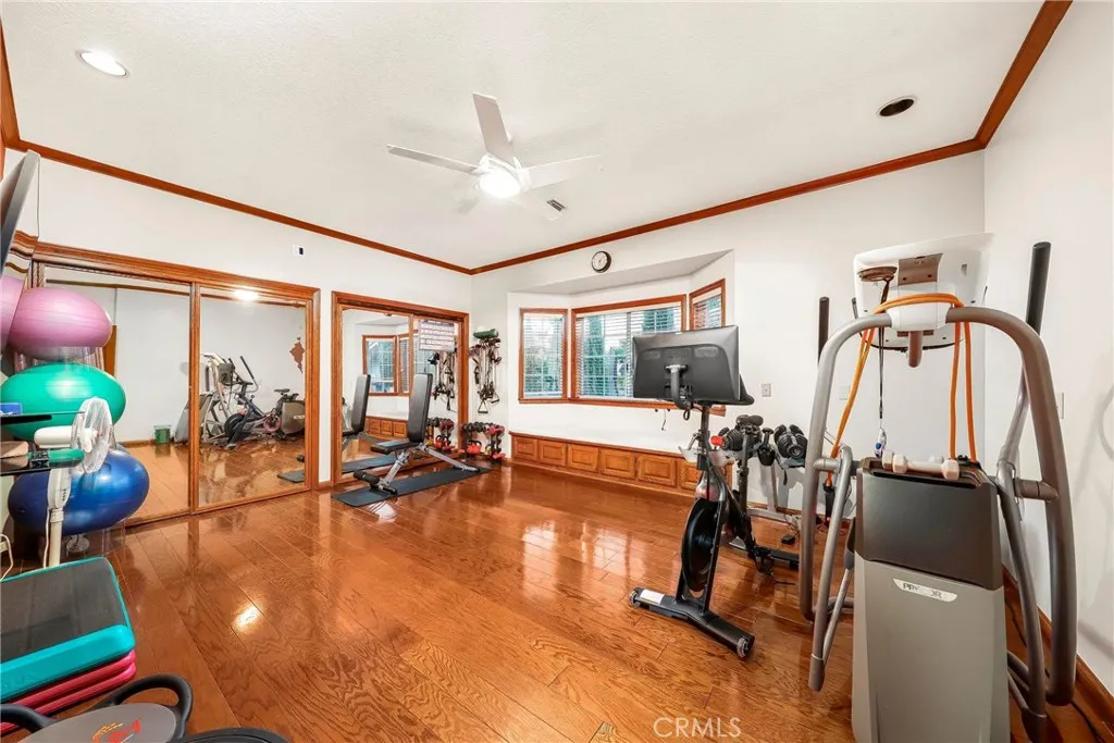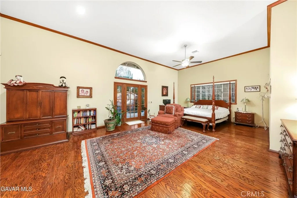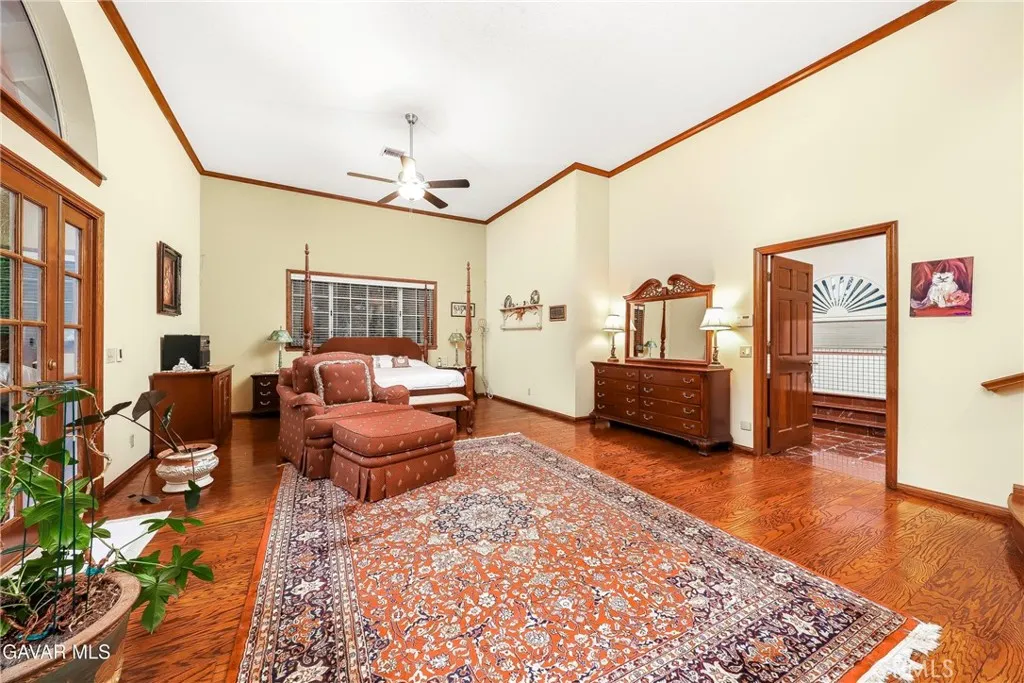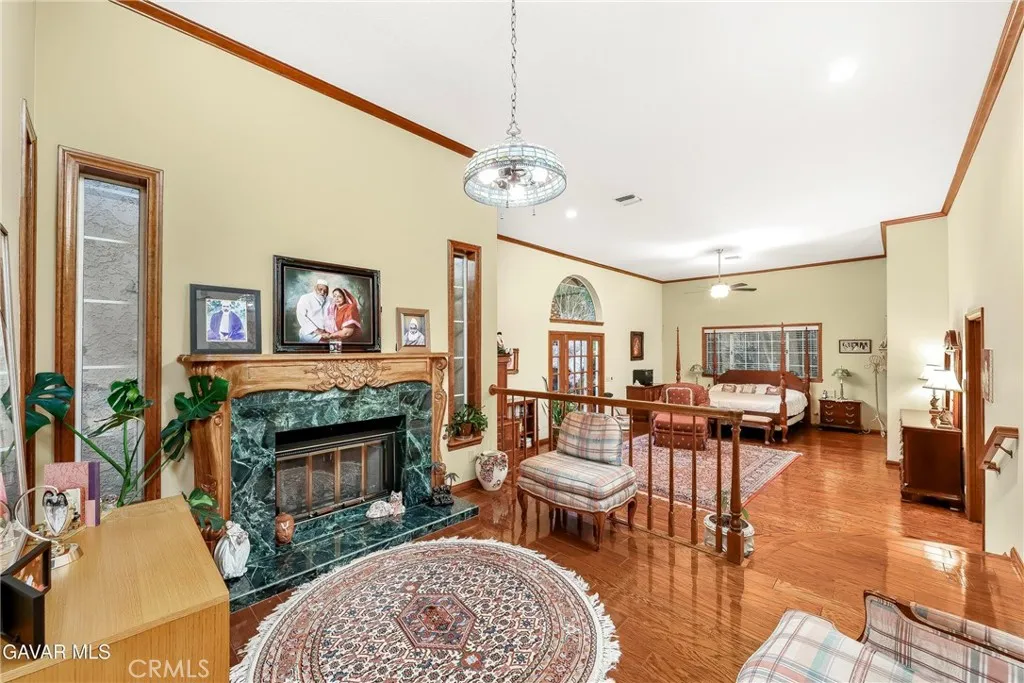WATCH THE VIDEO TOUR OF THIS GORGEOUS ESTATE CUSTOM HOME IN GATED GODDE HILL: \:https://youtu.be/Wptjf6YTTxQ This mostly Single Story (only 2 Bdrms & Full Bath upstairs) boasts custom finish you will see only in the finest homes. And it is in MOST PRESTIGIOUS gated subdivision. When you come thru the gates it is as though you are no longer in the Antelope Valley. Each home was Custom Built for rich variety and class. The Mature Landscaping gives the community a Lush Feel. As you enter this unique 4500+ sq ft home you will appreciate Rich Finish including Hardwood Flooring, Expansive Rooms, High Ceilings and Crown Molding. Formal Living and Dining Rooms are great for entertaining. The Family Room is Impressive with Dramatic Wood Ceilings and accents, a Floor to Ceiling Brick Fireplace nestled in one corner with Raised Hearth and Detailed, Crafted Mantle. There is also a Wetbar for entertaining. The Family Room is adjacent to the Chef's Kitchen perfect for family living. The Rich Granite Countertops, Stainless Appliances, Large Center Island with Vegetable Sink, Arched Brick Range/Hood Niche, Dual Ovens, Builtin Refrig/Freezer, Breakfast Bar and Large Pantry all make cooking a pleasure. The Master Suite is Huge with High Ceilings, a Sitting Area with Cozy Fireplace, 2 Walkin Closets with Builtins and French Doors to back Patio/Pool/Spa is perfect. The Master Bath features Dual Sinks, Spa Tub, Oversized Shower and Marble Flooring. There 4 are additional Bedrooms. One is set up as a large Gym a another as a Private Office with Builtins. You'll appreciate the state of the art Ka