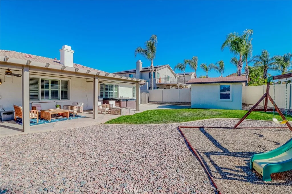 Welcome to 729 Windbound Ave., a stunning home that looks straight out of a MODEL SHOWCASE, but with NO HOA and LOW TAXES, a rare find in the city of Beaumont! From the moment you arrive, youll be impressed by the gorgeous curb appeal, lush landscaping, and a spotless garage with epoxy flooring. Step inside to discover beautiful TILE FLOORING, PLANTATION SHUTTERS throughout, and soft, neutral paint that creates a warm and inviting feel. When you enter the beautiful, airy formal living and dining rooms, you will immediately feel the pride in this home and notice the lovely crown molding. The upgraded kitchen features QUARTZ COUNTERT-TOPS, stylish cabinetry, LARGE ISLAND and plenty of space for cooking and entertaining. The FIREPLACE with designer tile adds an elegant touch to the living area. Each bedroom offers brand-new carpet, and both bathrooms have been thoughtfully upgraded with lovely cabinetry and modern lighting. The primary suite is spacious and serene, the perfect retreat after a long day. The primary suite features a stylish barn door leading to a beautifully upgraded bathroom with double sinks, new lighting, and a spacious walk-in closet. Step outside to your private backyard oasis! Enjoy a covered PATIO with ceiling fans, above-ground SPA, GAS FIRE PIT, RV PARKING and a large STUCCO SHED thats perfect for storage or could easily be converted into additional living space. This home truly has it all...style, comfort, a WHOLE HOUSE FAN and unbeatable value. Dont miss the opportunity to own this beautiful Beaumont gem where pride of ownership shines throughout!