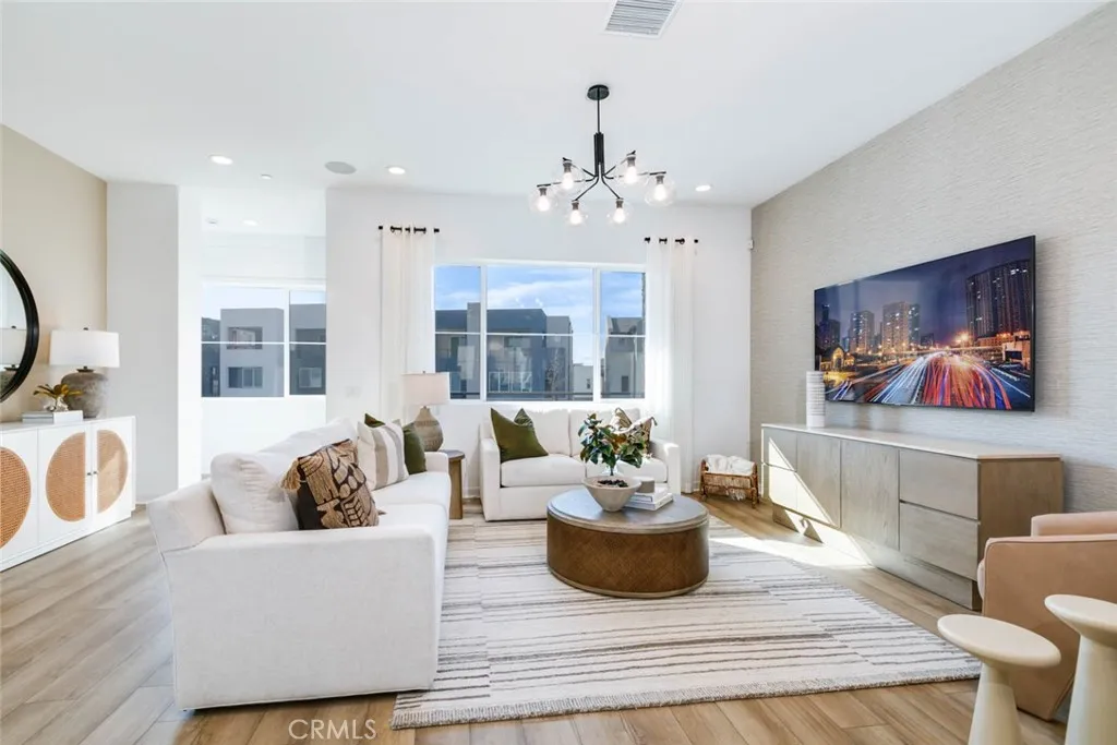 FULLY FURNISHED by a designer, all you have to do is pack your toothbrush! This exquisite move-in-ready model home features 4 bedrooms, 3 bathrooms, and a dedicated office across 2,100 square feet of thoughtfully designed living space. Ideally situated in Solis Park, a vibrant enclave within the prestigious Great Park master-planned community, this residence offers a perfect blend of comfort and convenience. The first floor includes an attached two-car garage, while the second level boasts a spacious great room, a contemporary kitchen, and a bedroom with a full bathroom. The kitchen is elegantly appointed with quartz countertops, upgraded cabinetry, and brand-new stainless-steel appliances. The third floor showcases the luxurious primary suite and two additional bedrooms. Zoned for the highly acclaimed Irvine School District, the home is just a short walk from Portola High School, the K8 Solis Park School, and the communitys amenities, including a park, pool, and clubhouse. Additional highlights include fully paid-off solar panels and the inclusion of all furniture, TV, and washer/dryermaking this truly a move-in-ready home you wont want to miss.