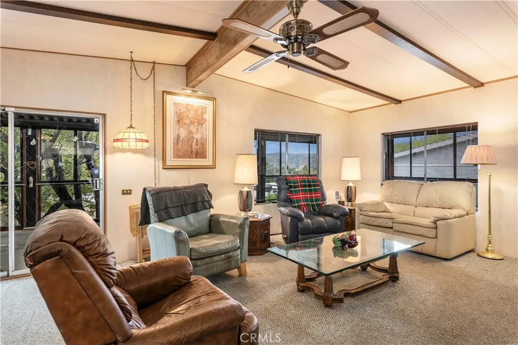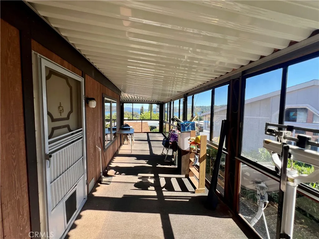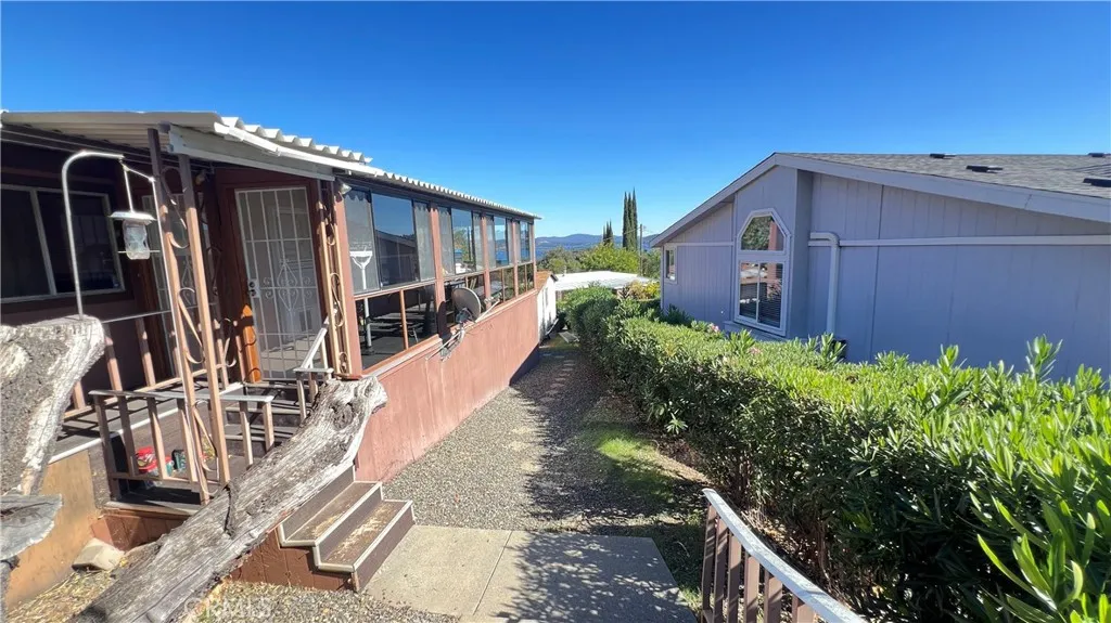 Welcome to this charming 1980 doublewide manufactured home offering 2 bedrooms and 2 bathrooms, set on a new 433A permanent foundation. The property is located in the desirable Konocti Bay area of Kelseyville, with partial views of beautiful Clear Lake. Step onto the wraparound covered deck, enclosed with glass panelsperfect for relaxing year-round. In back, youll find a spa where you can unwind while enjoying the peaceful surroundings. Inside, the floor plan flows nicely between the kitchen, dining area, and living room. The all-electric kitchen features linoleum flooring, ample cupboard and pantry space, and convenient storage throughout. The living and dining areas, as well as both bedrooms, are carpeted for comfort. Theres extensive storage space beneath the deck, plus a spacious detached workshop/studio that can serve multiple purposescrafting, home office, or hobby space. A small garden tool shed in front is also included. The property is fully fenced for added privacy and security. Additional features include: Laundry room with sink, storage, and included washer and dryer RV hookup and cleanup station located in the front driveway area Walking distance to Walnut Cove Mobile Home Park, where monthly boat slip rentals are available.