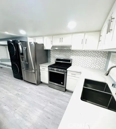Welcome to 26250 9th St, Space 105 in Highland a beautifully remodeled 1-bedroom, 1-bath home located in a secure gated community with 24-hour security. This cozy home offers modern finishes and a comfortable layout designed for easy living. Step into a bright, updated interior featuring new flooring, stylish kitchen cabinetry, and quartz countertops with a custom backsplash. The kitchen features a gas range, microwave, and a convenient stackable washer and dryer. The upgraded bathroom offers a sleek walk-in shower and updated fixtures. Enjoy two covered parking spaces, a community pool, and access to a park with a playground all within a peaceful, well-maintained park. With affordable space rent and a move-in-ready interior, this home blends comfort, security, and value in one great package.