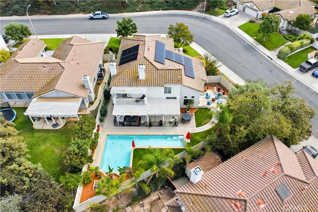 Beautifully remodeled 4 bedroom, 3 bathroom home with a pool, downstairs bedroom and full bathroom in the highly sought-after Redhawk community of South Temecula. The first floor includes a full bedroom and bathroom ideal for guests or a private home office. Upstairs, the primary suite offers a cozy fireplace, deck with a view of the Temecula Valley and a spa-like bathroom retreat with walk in closet. Two additional bedrooms and a full bath provide plenty of flexibility. Set on a private corner lot, the backyard is an entertainers dream with a sparkling pool, covered patio, and ample room for outdoor dining and relaxation. Soaring ceilings, abundant natural light, and an open floor plan designed for both everyday living and entertaining. The remodeled kitchen includes stylish finishes and flows effortlessly into the spacious family room. Gorgeous wood floors add warmth and sophistication throughout the main living areas. Additional highlights include a 3-car garage, low HOA dues, and proximity to award-winning schools (including Great Oak High), shopping, dining, and Temecula Wine Country. This turnkey home is move-in ready and waiting for its next owner to enjoy the best of California living.