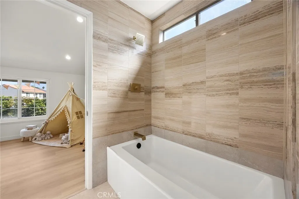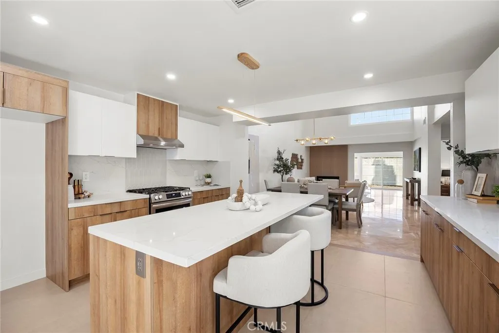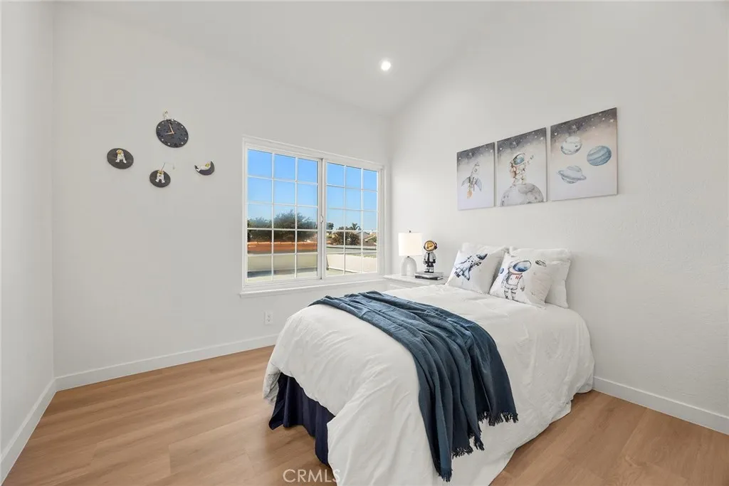 Welcome to this beautifully remodeled home in the desirable Anaheim Shores community, featuring a rare first-floor primary suite. The open layout includes a modern kitchen with a custom center island, updated bathrooms, new SPC flooring upstairs, LED lighting, and fresh interior/exterior paint. Elegant finishes include marble flooring, designer bathroom accents, and a sleek glass stair railing. Vaulted ceilings in the dining area, family room, and upstairs bedrooms add light and openness. A bonus room offers ideal space for a home office, gym, or playroom. Additional upgrades include a new HVAC system, garage door motor, and a 2-car garage. Anaheim Shores offers a private lake with walking paths, 3 pools, 3 Jacuzzis, patrolled security, well-maintained landscaping, and HOA-covered water. Conveniently located near shopping, dining, and the 5 & 91 freeways.