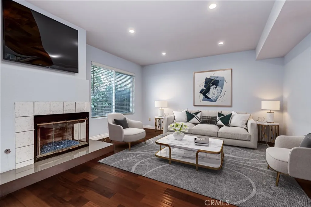 Turnkey remodeled 3-bedroom, 2.5-bath townhome in a desirable gated Gardena community. The home features a bright, welcoming layout with a spacious living and family area downstairs, complete with beautiful flooring and a cozy gas fireplace. A skylight over the stairs fills the space with natural light, and high vaulted ceilings upstairs create an open, airy feel. Large sliding doors open to a private backyard, perfect for relaxing, entertaining, or picking lemons from your own tree. The interior location ensures peace and quiet, away from street noise. The remodeled kitchen boasts modern white cabinetry, quartz countertops, and stainless-steel appliances, including a dishwasher. A convenient half bath is located on the main level, along with direct access to the attached two-car garage, which features built-in storage cabinets. All bedrooms are located upstairs, with the laundry area nearby for convenience. The primary suite offers two walk-in closets with custom shelving and a beautifully remodeled bathroom with dual sinks, a tub/shower combo, and a separate vanity area. Both bathrooms have been tastefully updated. Additional highlights include air conditioning for hot days, an upgraded electrical panel, and a gated community sparkling pool. Nothing to do but move in!
