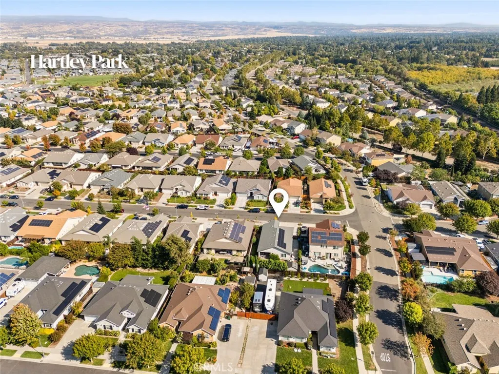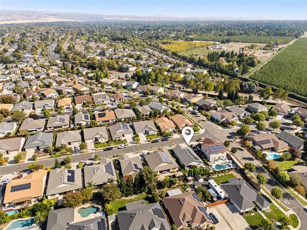 This newer North Chico home is move-in ready and offers great curb appeal with a custom wood-look garage door, a charming blue front door, and mature landscaping. The extra-wide driveway and side double-gates provide ample parking options, including potential for RV, smaller boat, or trailer storage. Inside, you'll find LVP plank flooring and an open floor plan that feels light and bright, thanks to high ceilings and numerous windows. The kitchen features an island, granite countertops, stainless steel appliancesincluding a new dishwasher and a 5-burner gas range with grill and dual ovens. A custom wall mural inspired by the Ahwahnee Hotel in Yosemite and warm wainscot paneling add a cozy, inviting touch. The home has four bedrooms: the primary and two others are adjacent, while the front bedroom with a built-in Murphy bed makes a versatile office or guest room with privacy. The backyard is truly delightful, offering a lush green lawn, covered patio with lighting and fan, a firepit area, accent lighting at night and two usable side yards. One side yard includes a vegetable garden with raised beds and a new Trex-style deck walkway, while the other provides concrete space perfect for an RV or kids play area. This well-loved home is ready for its new ownersand its sure to be a place you'll love too!