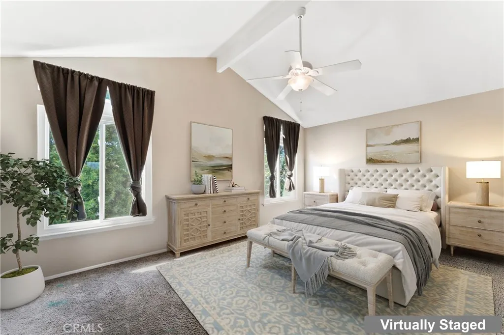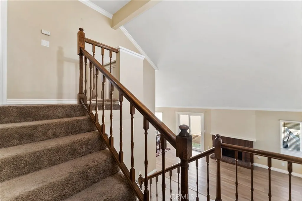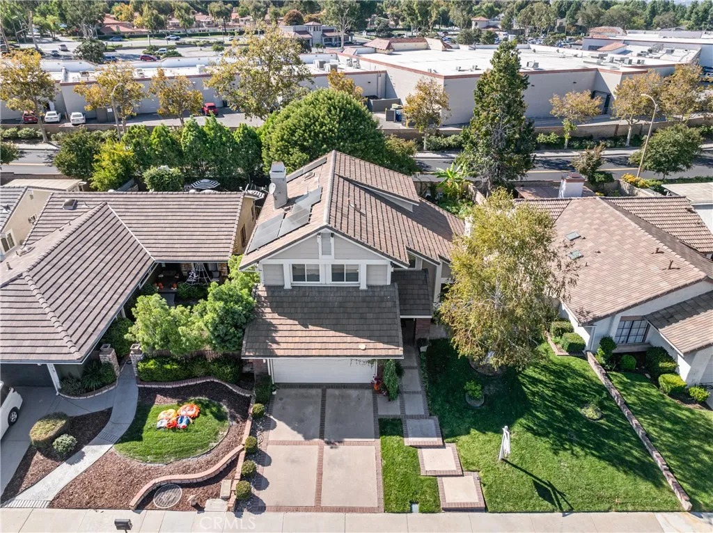 Welcome to a beautifully maintained Discovery Antigua model tucked just behind Granary Square, offering exceptional privacy with no rear neighbors. Inside, the home features both a formal living room and a comfortable family room, each highlighted by its own fireplace. Thoughtful details such as tile and laminate flooring downstairs, plush carpeting upstairs, crown molding, and a skylight in the primary bathroom create a warm and inviting ambiance. A standout feature of this property is its fully paid solar system, offering sustainable energy and long-term utility benefits. Outdoors, a private backyard provides the perfect space for relaxing or entertaining. The community offers access to Valencias renowned paseo network, parks, and four HOA-maintained pools. The HOA also maintains common area amenities, contributing to a well-kept and enjoyable neighborhood environment. Conveniently located near local schools, shopping, dining, and major freeways, this home blends comfort, functionality, and energy efficiency.