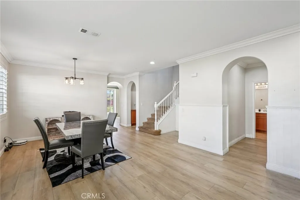 Welcome to this stunning 5-bedroom, 3-bath home located in the sought-after McSweeny Farms communityoffering resort-style amenities and a vibrant neighborhood lifestyle. Enjoy access to a world-class HOA pool, fitness center, community clubhouse, multiple parks, and more! Nestled at the end of a quiet cul-de-sac, this home boasts exceptional curb appeal with an attached 3-car tandem garage and owned solar panels for energy efficiency. Inside, youll find an inviting and spacious layout featuring elegant crown molding, custom paint, recessed lighting, wood plank flooring, and beautiful arched entryways throughout the main level. The formal living and dining rooms showcase timeless wainscoting and flow seamlessly into the great room, which includes a cozy fireplace, a secondary dining area, and a gourmet kitchen with wood cabinetry, quartz countertops, a center island with breakfast bar seating, and stainless steel appliances. The main floor also offers a bedroom and full bathroomperfect for guestsas well as a laundry room with a utility sink and extra storage. Upstairs, youll find four additional bedrooms, including a massive primary suite featuring a luxurious ensuite bath with dual sinks, a soaking tub, separate shower, vanity area, and a large walk-in closet. A shared hall bath serves the secondary bedrooms. Step outside to the massive, fully fenced backyard with lawn and paver areas(once of the largest in the community)ready for your personal touch and ideal for entertaining or relaxing. Residents of McSweeny Farms enjoy resort-style amenities, including a pool, spa, gym,