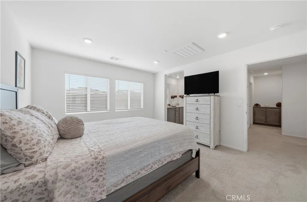 Welcome to your new home in the heart of Winchester at Pradera Place! This stunning newly built 3-bedroom, 2.5-bath residence offers the perfect blend of modern comfort, energy efficiency, and Southern California charm. Step inside to discover a bright, open-concept living area filled with natural light, stylish finishes, and plenty of room to entertain. The FULLY PAID-OFF solar system helps keep your energy bills low while reducing your environmental footprint.The spacious kitchen boasts sleek granite countertops, stainless steel appliances, and a large center island that has a built in two-top table attached. Upstairs, youll find three generous bedrooms, including a luxurious primary suite complete with a walk-in closet and a private en-suite bathroom featuring dual sinks and a large walk-in shower. Enjoy low-maintenance living with turf landscaping in both the front and backyard, offering year-round greenery and easy upkeep. Additional highlights include a two-car garage, all appliances included, energy-efficient upgrades, and a great community park. Conveniently located near shopping, dining, and freeway access, NEW Elementary School COMING less than a mile away, this Winchester gem has everything youve been looking forand more!