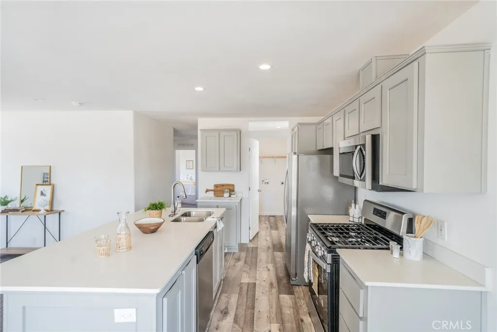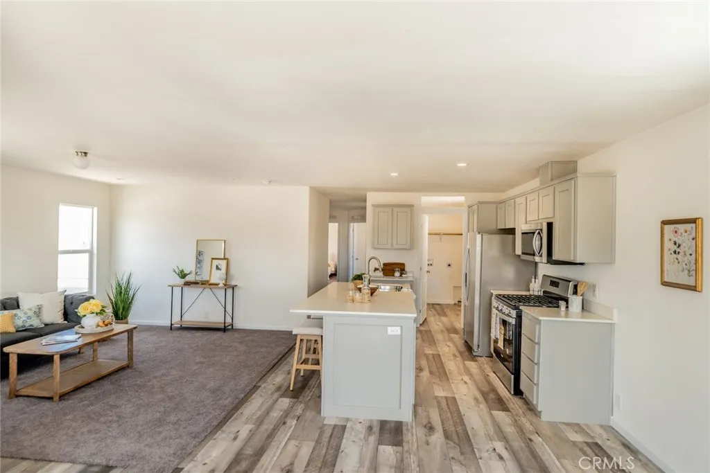YOUR SEARCH IS OVER...YOU FOUND YOUR DREAM HOME!! Nestled in the heart of Hesperia, this brand-new 3-bedroom, 2-bath home in the charming 55+ gated community of Willow Oak Estates is ready to welcome you home! (Primary resident must be 55+, others can be 18+). Offering 1,344 sq. ft. of thoughtfully designed living space, this home is perfect for those looking to relax and enjoy life at a comfortable pace. Step onto the inviting covered front porch the perfect spot to enjoy your morning coffee while taking in the beautiful desert and mountain views. The front yard has been newly landscaped with low-maintenance plants, adding to the homes welcoming curb appeal. Inside, youll find an open and airy floor plan designed with comfort and convenience in mind. The bright kitchen features Whirlpool stainless-steel appliances including a refrigerator, microwave, stove, and dishwasher paired with elegant granite countertops and a dual stainless-steel sink in the kitchen island. The dining area and cozy living room create a warm space to gather with family and friends. The home features a mix of linoleum wood-look flooring and soft carpet throughout, along with central air and heat to keep you comfortable year-round. The primary bedroom includes a spacious walk-in closet and an ensuite bathroom with dual sinks, granite countertops, and a walk-in shower for easy access. An indoor laundry room adds to the home's thoughtful design. You'll love the convenience of the attached covered carport with room for two cars. Willow Oak Estates offers wonderful community amenities, including a pool