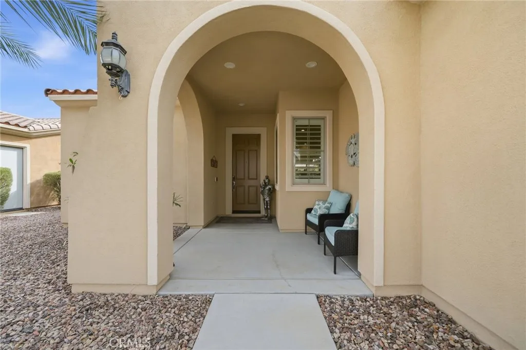 ***DONT MISS THIS STUNNING CASTELLANO-MODEL POOL HOMEOVER $211,000 IN RECENT UPGRADESIN THE HIGHLY DESIRABLE SUN CITY SHADOW HILLS COMMUNITY! Premium Quality, Absolutely Immaculate, and Truly Move-In Ready!***This beautifully maintained 2,230 sq. ft. single-story residence offers 2 bedrooms, 2.5 baths, and a spacious bonus office/den, all wrapped in an inviting open-concept design with travertine flooring and plantation shutters throughout. The brand-new gourmet kitchen is a chefs delight, showcasing premium granite countertops, an enlarged center island, a 7-person breakfast bar, stainless steel appliances, five-burner gas cooktop, double ovens, under-cabinet lighting, and soft-close pull-out cabinetry. A generous dining area complements the kitchen, while the formal dining roomcurrently used as a sewing roomfeatures a unique built-in shelf encircling the space. The expansive great room opens to your private desert oasis: a completely redesigned backyard with a new saltwater pool and spa, travertine decking (cooler underfoot in hot temps), fresh landscaping, a covered dining area, and an extended covered patio with a retractable movie screenperfect for both relaxation and entertaining. The luxurious primary suite offers a large walk-in closet, dual vanities, a Roman soaking tub, and an oversized walk-in shower. The privately located secondary bedroomwith an adjacent full bathis ideal for guests or multi-generational living. A stylish powder room is conveniently positioned off the main living area as well as a laundry room with sink and bonus cabinetry. The 2-car garage enj