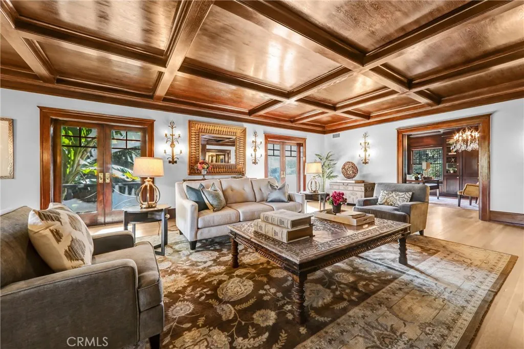 A Mission Revival and Arts & Crafts architectural masterpiece by acclaimed architect Joseph J. Blick, this estate blends timeless sophistication with modern luxury. Set behind secure iron gates in one of Pasadenas most coveted enclaves, the residence spans approximately 12,000 square feet with 8 bedrooms and 10 baths, thoughtfully crafted for both grand entertaining and intimate everyday living. Surrounded by tall hedges and graceful palms, the impressive faade and manicured grounds evoke a sense of prestige and tranquility. Inside, rich mahogany and oak paneling, Grueby Faience and Batchelder tile fireplaces, and original brass hardware showcase the homes distinguished pedigree. A dramatic foyer opens to elegant formal living and dining rooms, each enhanced by custom millwork, harmonious proportions, and sunlit interiors. At the heart of the home, the chefs kitchen features professional-grade appliances, an oversized island, and a well-appointed butlers pantryperfect for culinary pursuits or casual gatherings. Multiple family rooms, a stately library or office, a private theater, and a home gym provide versatile spaces for work, leisure, and entertainment. The primary suite is a serene sanctuary, complete with a fireside sitting area, a newly completed spa-inspired bath, and generous walk-in closets. Additional bedrooms include ensuite baths and custom finishes, ensuring comfort and privacy for family and guests. Outdoors, resort-style living unfolds across expansive covered patios, lush gardens, and a sparkling pool and spa. A tranquil koi pond, wraparound balcony, and mu