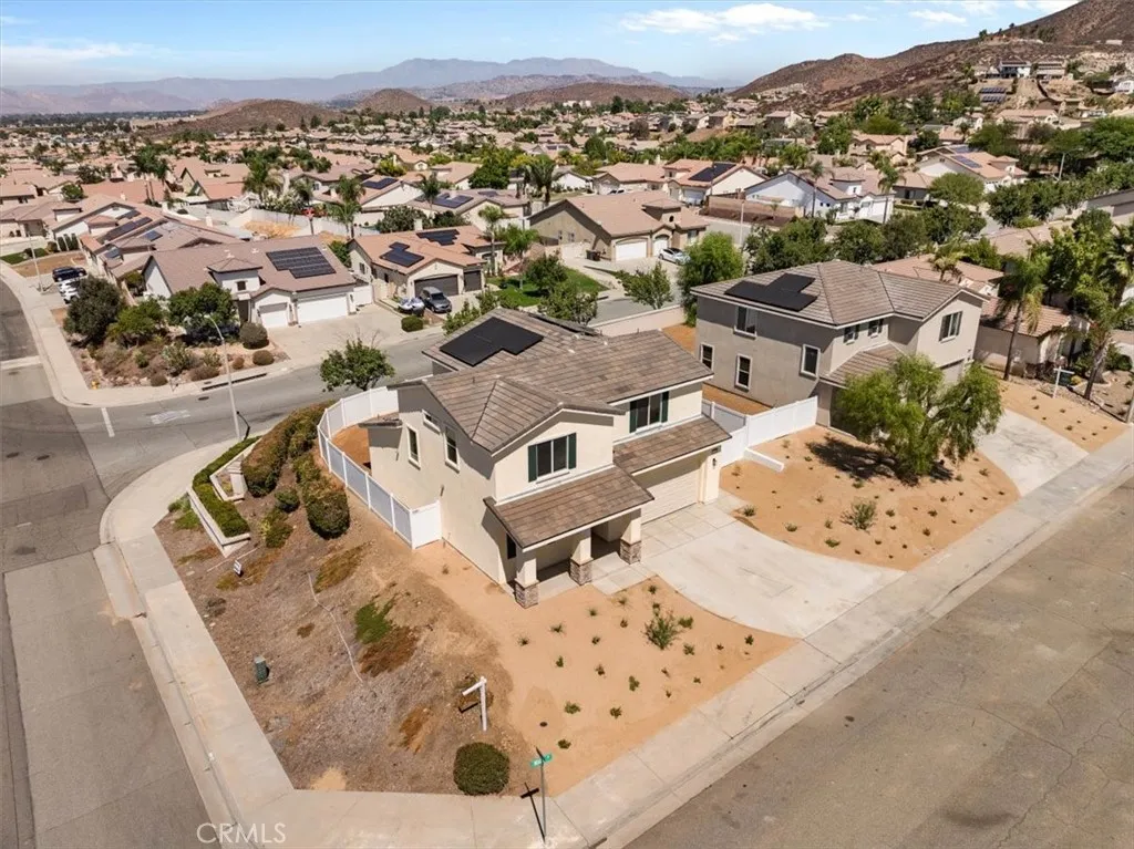 Welcome to Barrington Heights!! Be amazed by this BRAND NEW built home with VIEWS,VIEWS,VIEWS where style, space, and sustainability come together seamlessly. Situated on a corner lot, this thoughtfully designed residence features a convenient downstairs bedroom and full bath, perfect for multigenerational living or easy accessibility. Step inside to discover the solid surface laminate flooring throughout, a modern two-tone shaker kitchen with black finishes, peninsula island, and sleek GE appliances including a range, built in microwave, and dishwasher. The open layout is complemented by recessed LED lighting and sliding closet doors in every bedroom, adding both function and flair. Upstairs, enjoy the convenience of a dedicated laundry room with hookups ready to go, and unwind in your spacious primary suite complete with a large tub and separate shower. Outside, a generous backyard with vinyl fencing is ready for you to add your dream pool or other creative garden ideas, let your imagination run wild!! The drought-tolerant front landscaping keeps maintenance low and curb appeal high. Built with energy efficiency in mind, the home includes a FULLY OWNED solar system, heat pump HVAC, and a concrete tile roof with advanced ventilation. There is also a 2-car garage with direct access for added convenience. All of this in a quiet community with a low HOA and tax rate, and YOU can be the first owner!! Dont miss this rare blend of modern design, energy savings, flexible living, and so much more - schedule your showing today!!