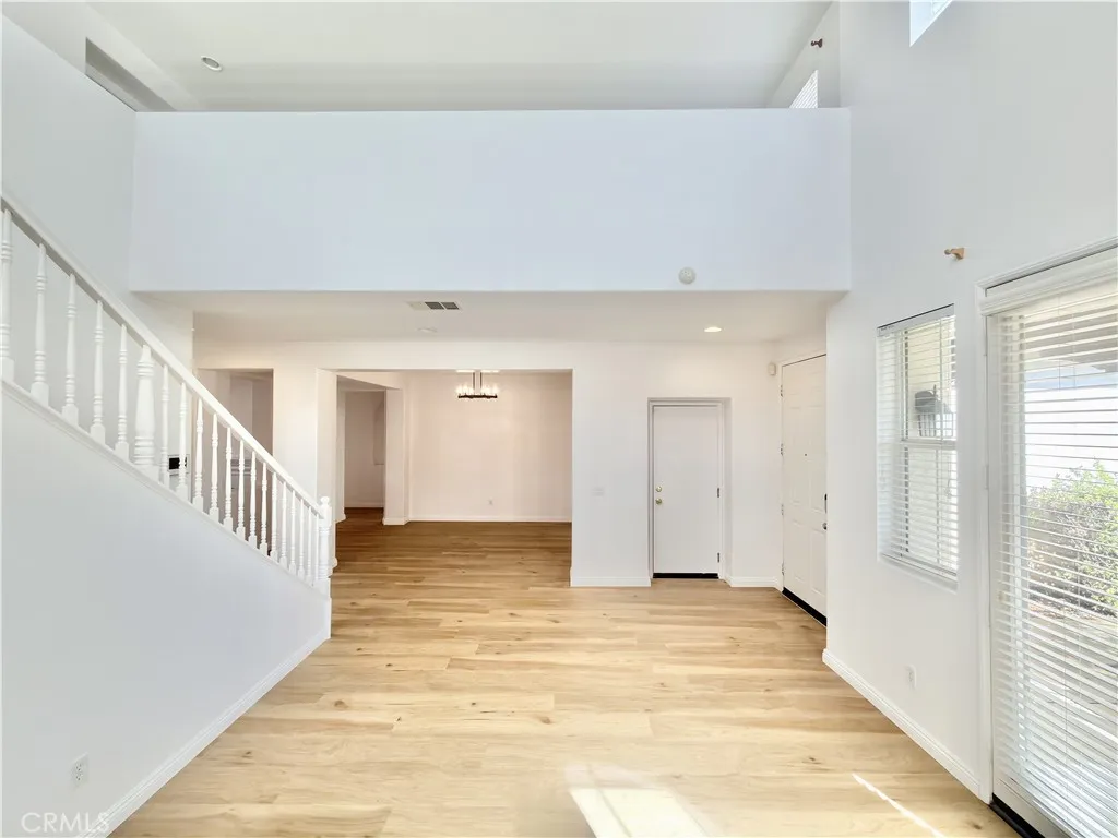 Beautifully front yard featuring mature palm trees that create a welcoming first impression. The covered front porch offers a charming sitting area and provides sheltered access to the entryway. Step into a bright and inviting first level featuring soaring ceilings, abundant natural light, and a modern open layout. The formal living and dining areas offer generous space for entertaining, highlighted by new flooring and freshly new painted interiors throughout. The expansive family room includes a cozy fireplace and large windows overlooking the backyard. The upgraded kitchen boasts a spacious center island, granite countertops, ample cabinetry, a walk-in pantry, and direct access to the back yard through sliding glass doors. The first floor also includes Two bedrooms and a full bathroom, providing ideal convenience for guests or multi-generational living. The second level features a spacious and versatile loft area, ideal for use as a media room, home office, or additional family gathering space. The expansive primary suite offers a bright and serene retreat with high ceilings and large windows that bring in abundant natural light. The primary bathroom includes dual vanities, a soaking tub, a separate walk-in shower, and two generously sized walk-in closet with built-in shelving. Three additional bedrooms upstairs provide comfortable accommodations. A well-appointed Jack-and-Jill bathroom serves two of the secondary bedrooms, while a separate upstairs laundry room adds convenience with extra cabinetry and counter space. The low-maintenance backyard offers a wide concrete sp