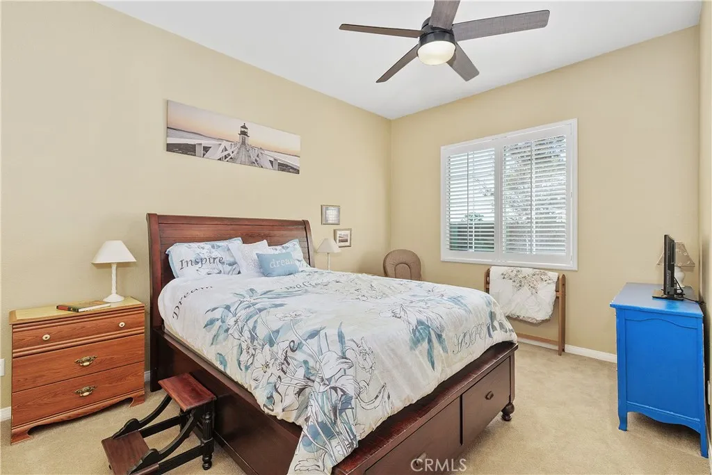 Discover the charm of Rancho Valencia, a distinctive gated community nestled among citrus and avocado groves. The neighborhood stands out for its unique design, with homes separated by citrus groves that wind throughout the community, creating a tranquil and picturesque setting. All homes in Rancho Valencia are remarkable, and this single-story residence is no exception. You are greeted by a newly painted exterior, setting an inviting tone from the moment of arrival. Inside, the home boasts four spacious bedrooms and three and a half bathrooms, complemented by an additional room that can serve as a library or home office. The property is designed for comfort and privacy, offering three separate living areas where individuals can enjoy their own private space. A full guest suite is situated on the east side of the entry, complete with an ensuite bathrooman ideal solution for multi-generational living with grandparents or adult children. On the west side of the entry, an office and two more bedrooms share a hall bath, providing flexible options for family or guests. The primary suite is roomy and opens to the back patio. The updated primary bath features a Roman tub, open shower, and a well-lit dual sink vanity. High ceilings and an open-concept layout in the living areas create a spacious, inviting atmosphere, perfect for gatherings and relaxation. The updated kitchen features granite countertops and dual sinks, catering to both culinary enthusiasts and busy households. For year-round comfort, the home is equipped with a newly installed 16 SEER HVAC system. The backyard, sit