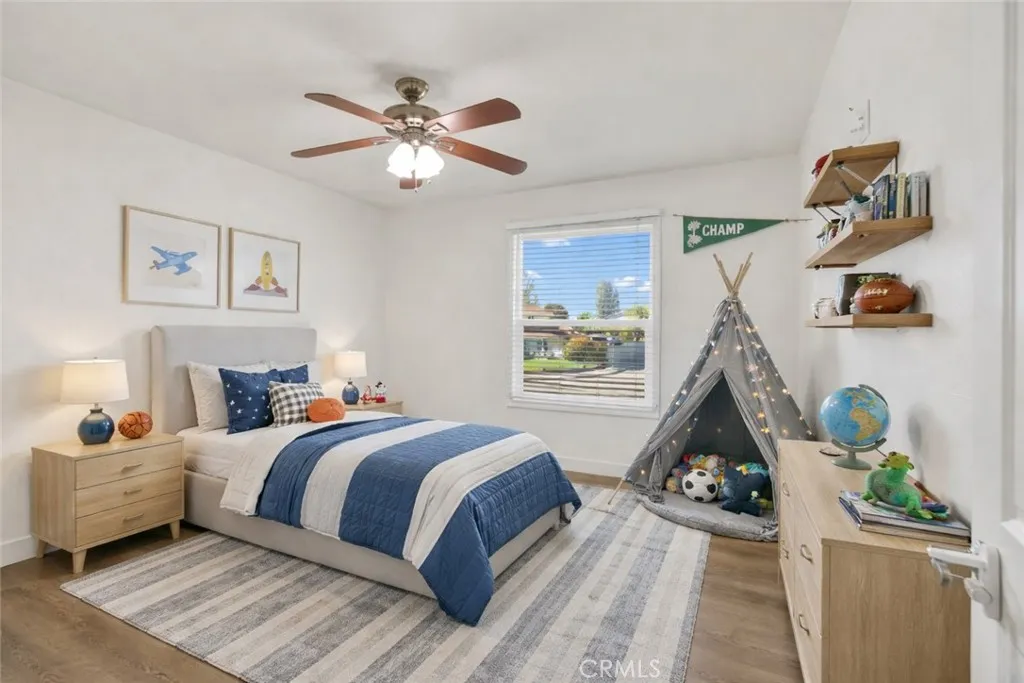 Welcome to 449 S Wellington Rd, a beautifully maintained 5 bedroom pool home in one of Oranges most convenient and desirable neighborhoods. From the charming curb appeal to the thoughtful upgrades inside, this home offers comfort, flexibility, and endless possibilities. Step inside to newer laminate flooring, recessed lighting, ceiling fans, and updated bathrooms throughout. The spacious layout includes a cozy kitchen nook that overlooks the front yard, perfect for casual meals and morning coffee. The highly desirable main-floor bedroom features its own fireplace, ideal for guests, multigenerational living, or a private office retreat. Upstairs, you will find four additional bedrooms, including one with its own private entrance and balcony. This rare feature opens the door for extended family living, an adult childs space, or possible rental income. The backyard is an inviting oasis with a sparkling heart shape pool with firepit, perfect for relaxing or hosting gatherings on warm Southern California days. Located just down the street from the highly regarded McPherson Magnet School, this home also offers unbeatable convenience with nearby shopping, dining, Old Towne Orange, Chapman University, Santiago Canyon, hiking and biking trails, as well as easy freeway access. Best of all, the neighborhood has no HOA, low taxes, and no Mello Roos, making this an exceptional value. With its flexible floor plan, thoughtful upgrades, and prime location, 449 S Wellington Rd is the perfect place to call home, make sure to come see it before its too late.