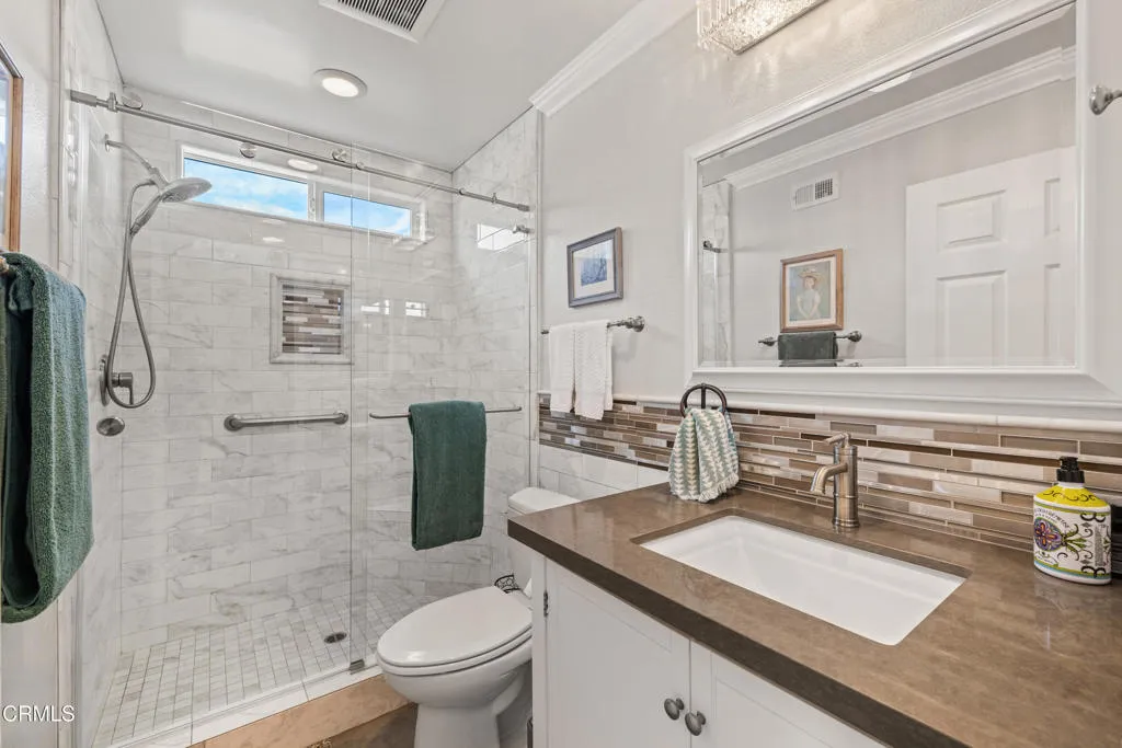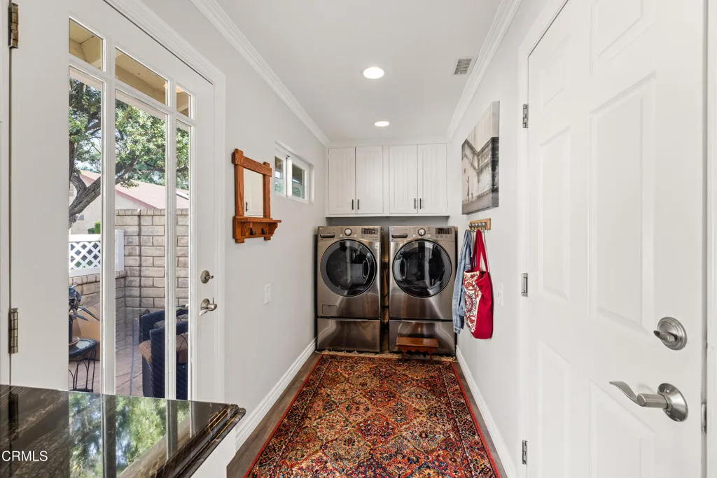 Located in Leisure Village, this Amalfi model features many upgrades. Remodeled kitchen with white cabinets, custom hardware, stainless steel appliances, subway tile back splash and granite counter top. Newer lament flooring through out with tile flooring in bathrooms. Office has built in cabinetry with lots of light. Both bathrooms have tiled walk in showers with glass doors and granite vanities. High ceilings in the primary bedroom and living room. Both bedrooms have custom closet organizers. Recessed lighting, plantation shutters, and crown molding throughout. Also includes interior laundry, a covered patio, with stamped concrete flooring. Situated on a cul -de -sac, backs to the greenbelt and some views of the mountains.