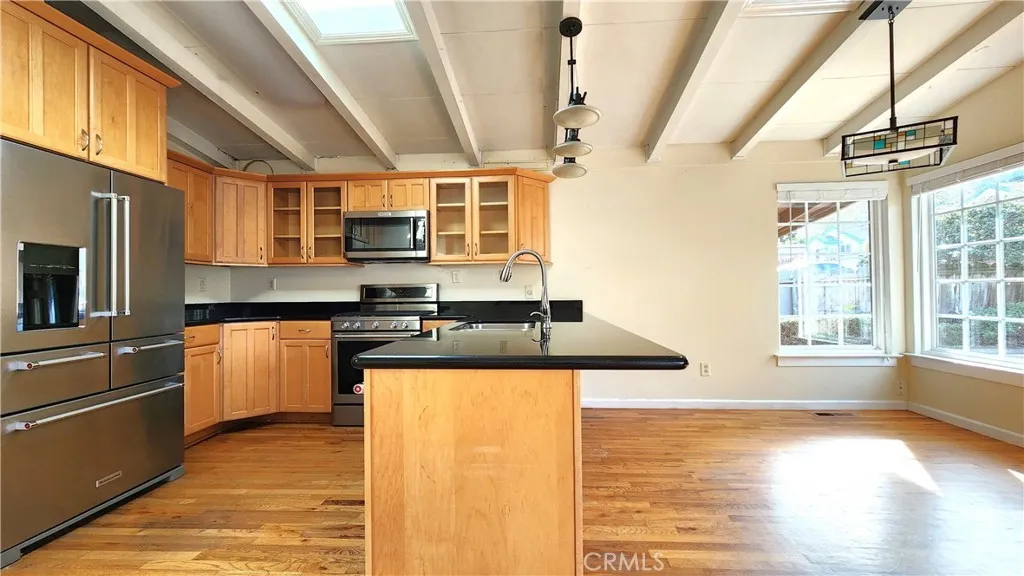 Upon entering this cozy 4 bedroom 1.75 bathroom home there is an open concept space that includes a fireplace to the left and a spacious kitchen with granite counter tops and stainless steel appliances to the right. The home features authentic wood flooring throughout with the exception of tile in the restrooms. The home has lots of natural light coming in from al the windows and sky lights through out. The laundry room is in the hallway and the back bedroom and master bedrooms both have access to the peaceful backyard getaway. In addition this home is only 5 minutes from the beach and the Monterey Bay Aquarium area where there are tons of restaurants and shops.