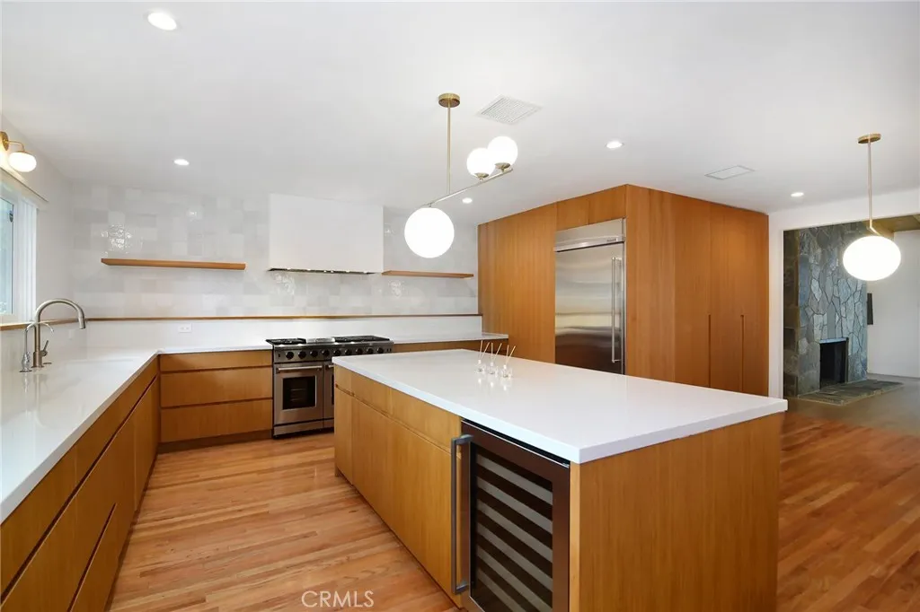 Almost everyone loves a Charles Du Bois designed home and with amazing upgrades theres reason to love it even more! Presenting an incredible solar-powered single-level pool home within this ultra-desirable South of Blvd Tarzana locale. This one will make you smile a mile wide from the very first moment you arrive. Beautiful landscape, stack-stone accents and an incredible wooden entry-door make a prime first impression. Inside, an open Living Room and Family Room are enriched with gorgeous wood beam vaulted ceilings and a distinct double-sided fireplace. Custom French doors in each, provide easy access to the rear. This kitchen is truly what dreams are made of. Loads of stunning custom cabinetry, huge center-island with wine refrigerator, dazzling counters and large windows to invite natural light to shine. At the east-wing, discover an ensuite with bathroom that provides outdoor accessideal for use from the pool. Additional Jack and Jill bedrooms share a tastefully remodeled bath. Spacious primary suite features French Doors, walk-in closet and unique custom designed bathroom with separate tub and shower. Outside, a large refreshing pool, elevated spa and fireplace awaits. Upper-level relaxation arena provides a tranquil escape from it all. Solar is 100% owned so no extra payment required. All this and sought-after schools toodont miss! Several photos have been virtually staged,