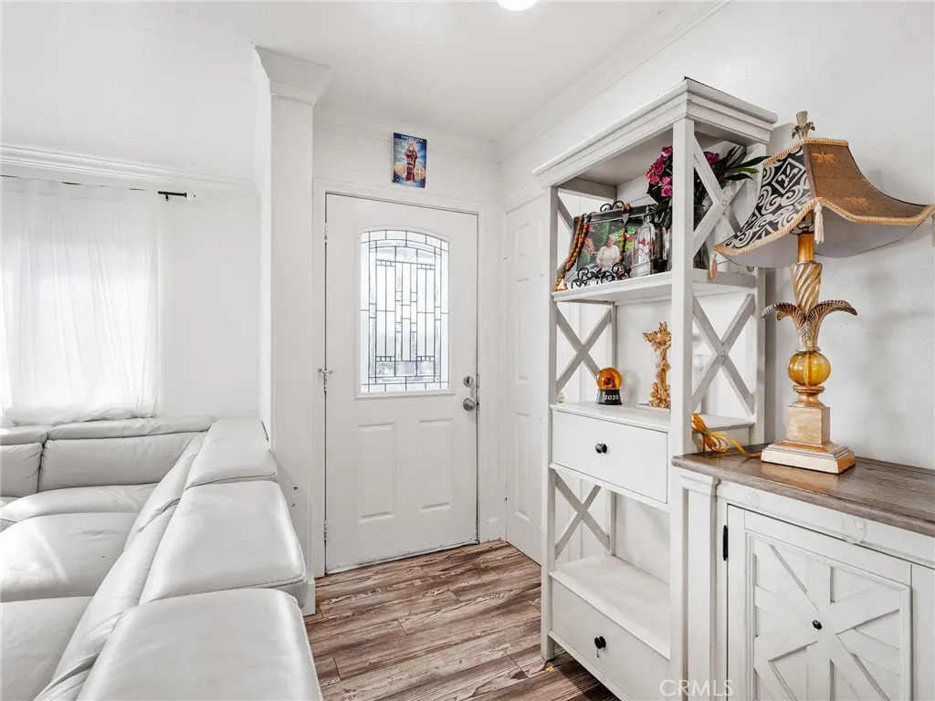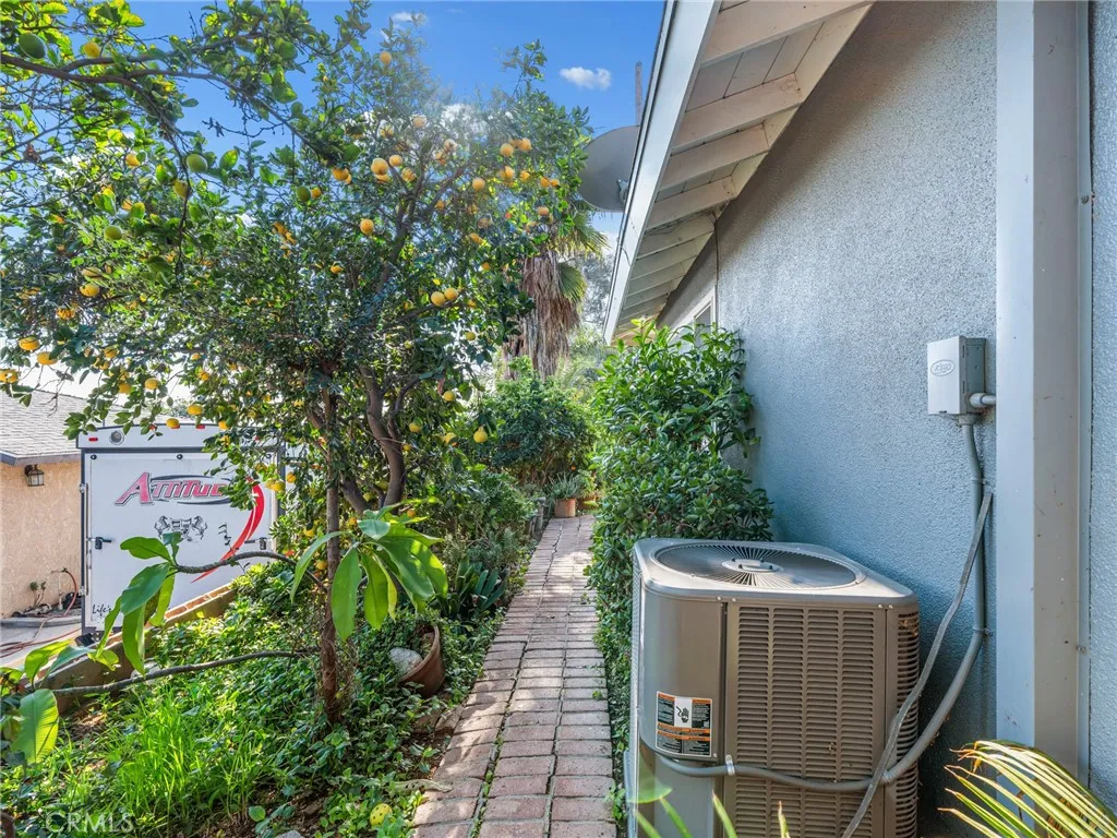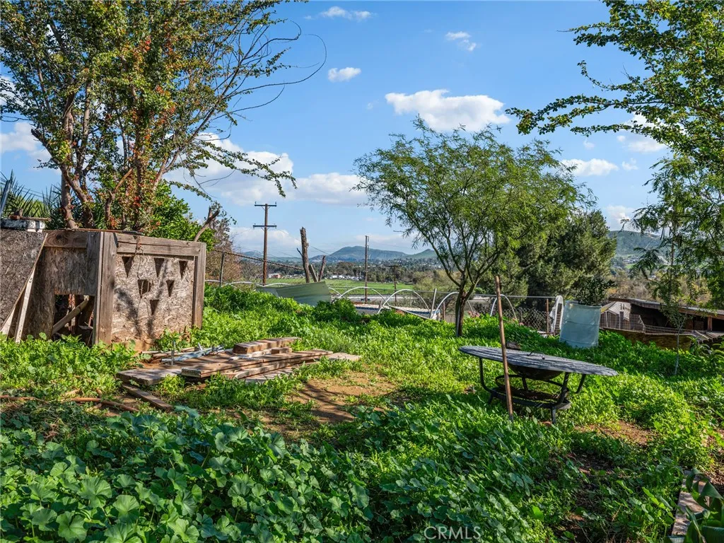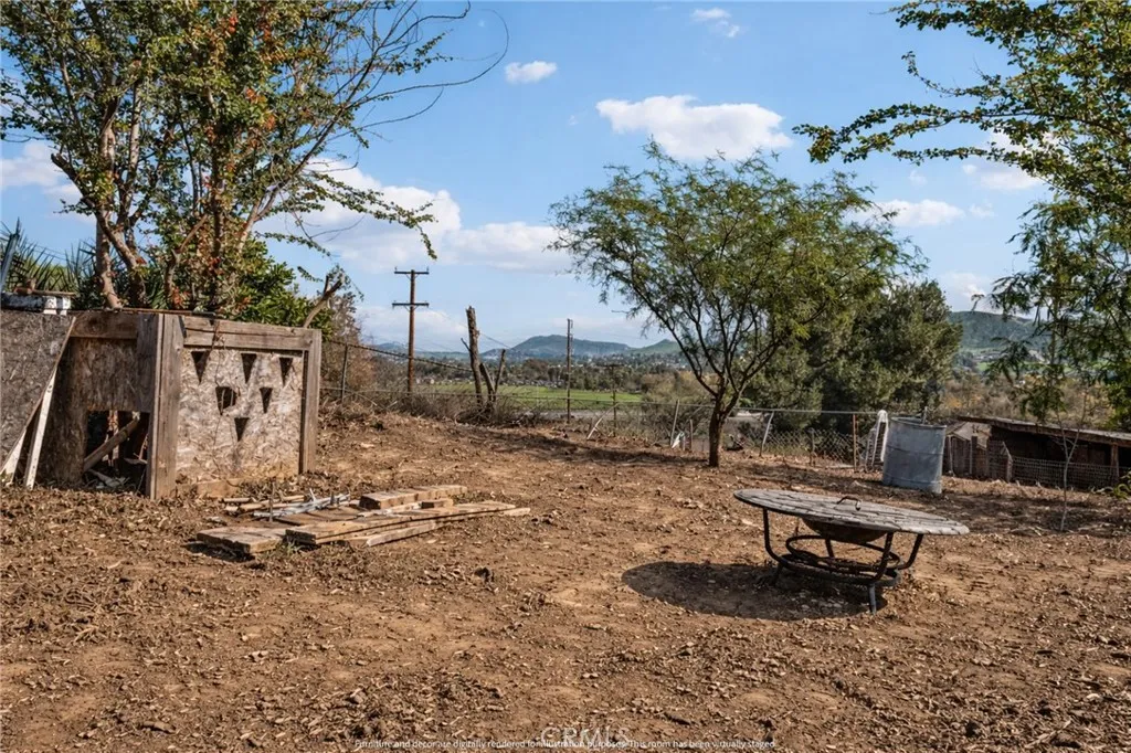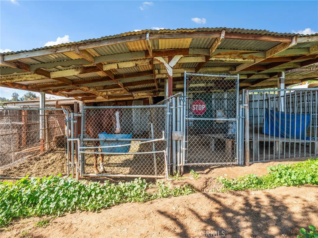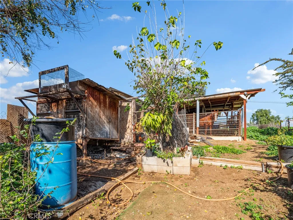 Sought-After Jurupa Valley Location! This unique 3-bedroom, 2-bath home sits on a spacious 0.53-acre lot with iron security gate, lush lawn, palm trees, and mature landscaping. Interior features include plank vinyl flooring throughout, crown molding, fresh interior/exterior paint, custom rock and marble fireplace, upgraded double-pane windows, and a kitchen with stainless farmhouse sink, gas range, and breakfast nook. The primary bedroom includes a nursery room, with additional generously sized bedrooms. A/C and furnace system approximately 6 years old. Converted garage (buyer to verify permits) includes indoor laundry. Enjoy outdoor living with a large covered patio with brick flooring, built-in block grill, bonus room off patio, cross-fenced garden, RV parking, and spectacular elevated views. Backyard offers mature fruit trees including apple, guava, orange, grapefruit, mango, and a large mature palm. Property also includes two additional units: a 600 sq ft 1-bedroom back house with kitchen and bath, and a 300 sq ft studio with bathroom. Additional features include horse barn with 4 stalls, two chicken coops, and seller will include a 5th wheel trailer. Ideal for multi-generational living, rental income, or hobby property.