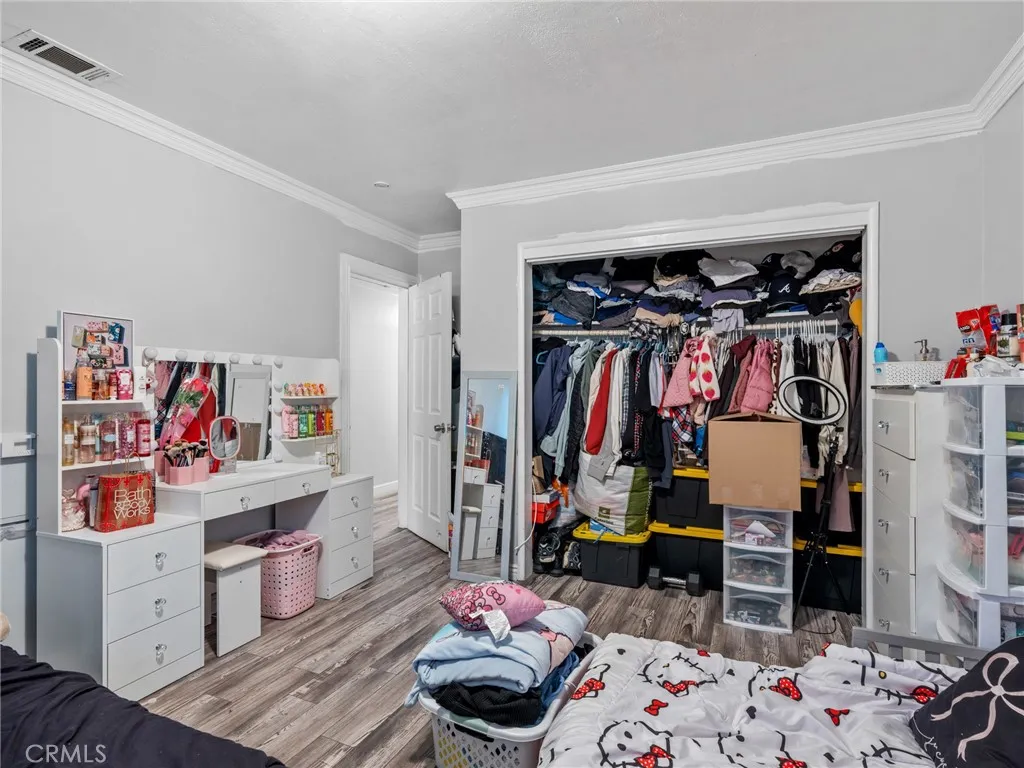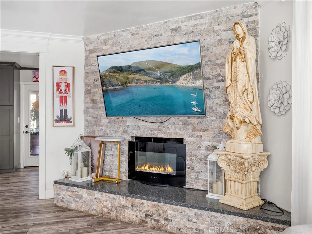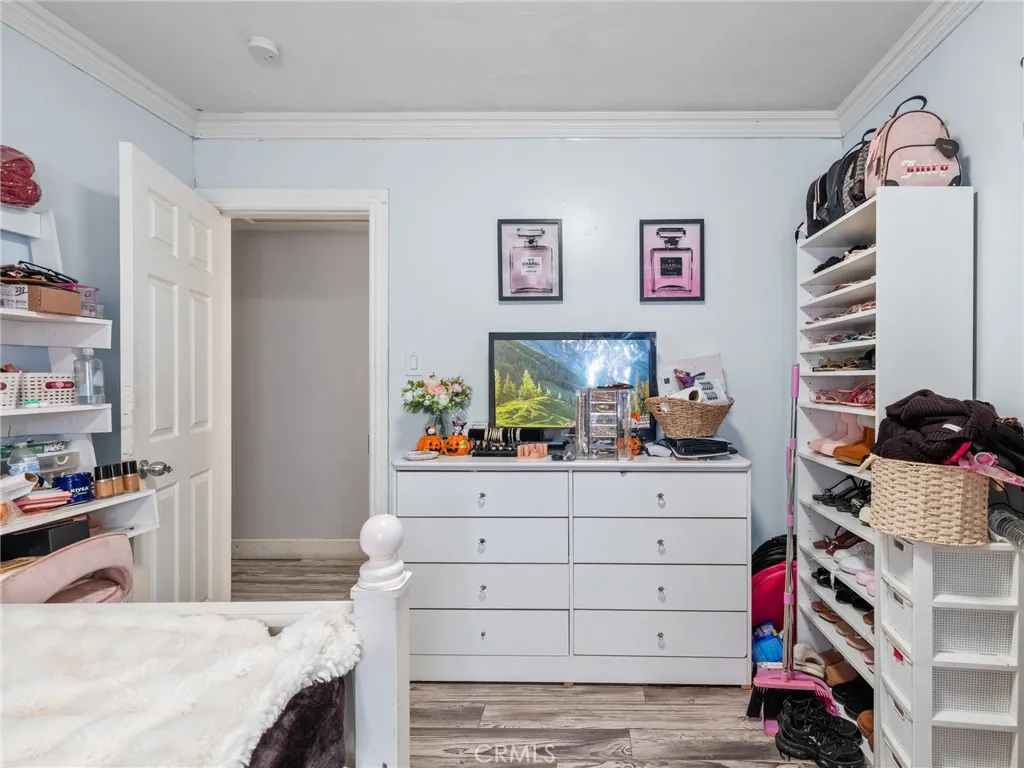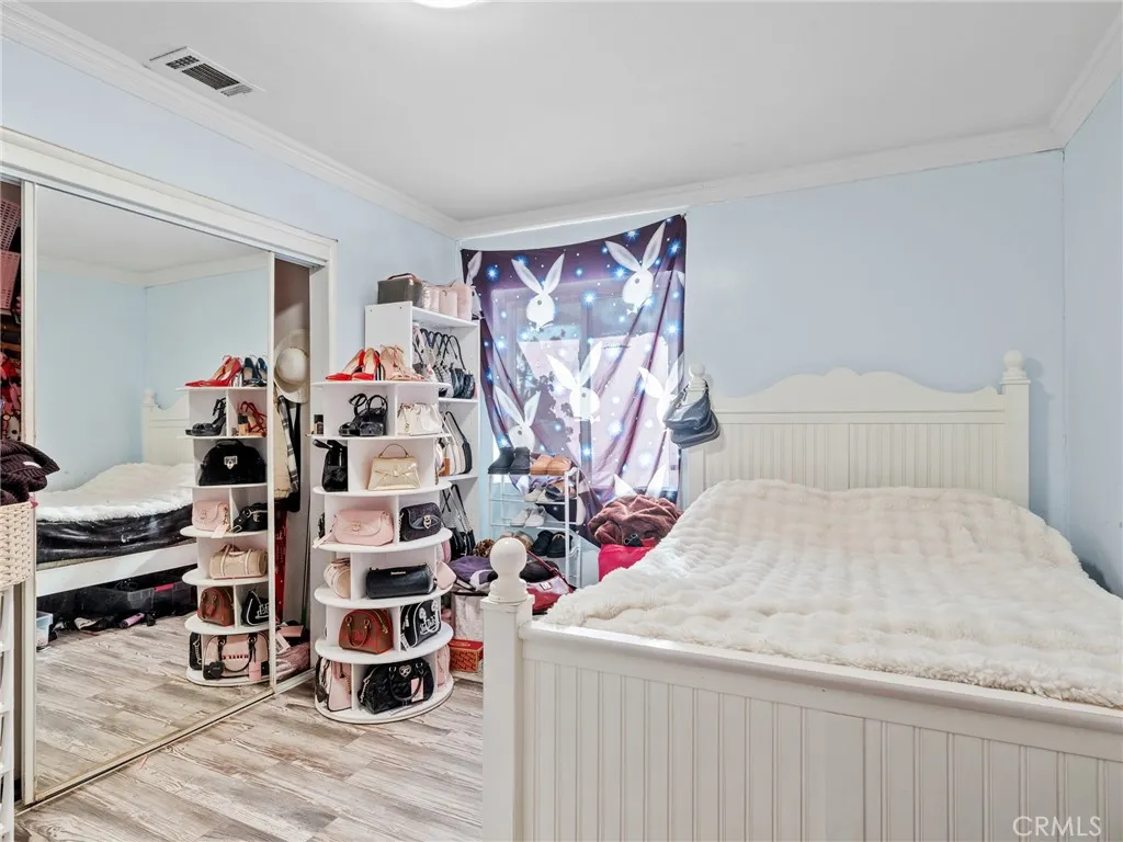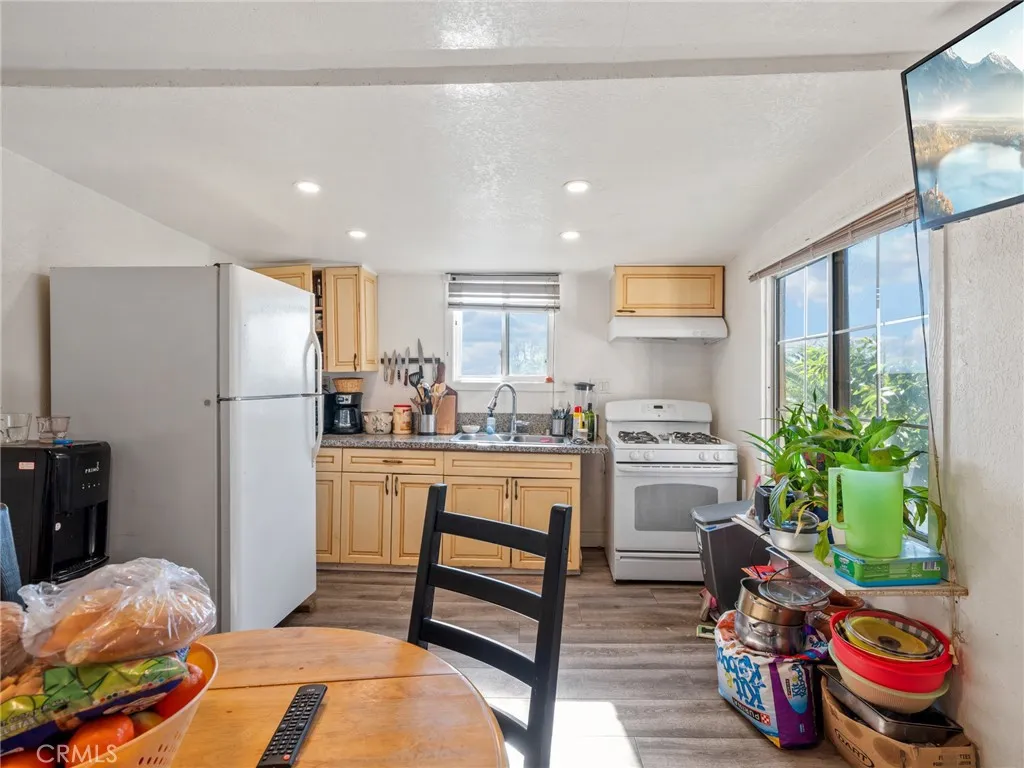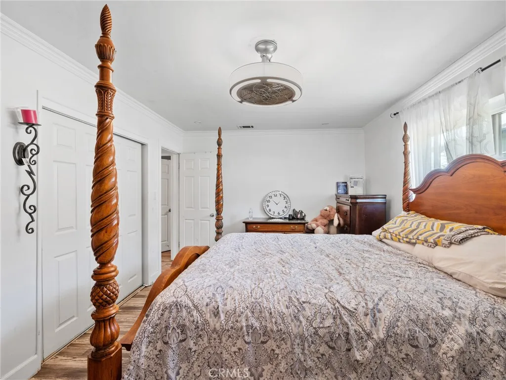 Sought-After Jurupa Valley Location! This unique 3-bedroom, 2-bath home sits on a spacious 0.53-acre lot with iron security gate, lush lawn, palm trees, and mature landscaping. Interior features include plank vinyl flooring throughout, crown molding, fresh interior/exterior paint, custom rock and marble fireplace, upgraded double-pane windows, and a kitchen with stainless farmhouse sink, gas range, and breakfast nook. The primary bedroom includes a nursery room, with additional generously sized bedrooms. A/C and furnace system approximately 6 years old. Converted garage (buyer to verify permits) includes indoor laundry. Enjoy outdoor living with a large covered patio with brick flooring, built-in block grill, bonus room off patio, cross-fenced garden, RV parking, and spectacular elevated views. Backyard offers mature fruit trees including apple, guava, orange, grapefruit, mango, and a large mature palm. Property also includes two additional units: a 600 sq ft 1-bedroom back house with kitchen and bath, and a 300 sq ft studio with bathroom. Additional features include horse barn with 4 stalls, two chicken coops, and seller will include a 5th wheel trailer. Ideal for multi-generational living, rental income, or hobby property.