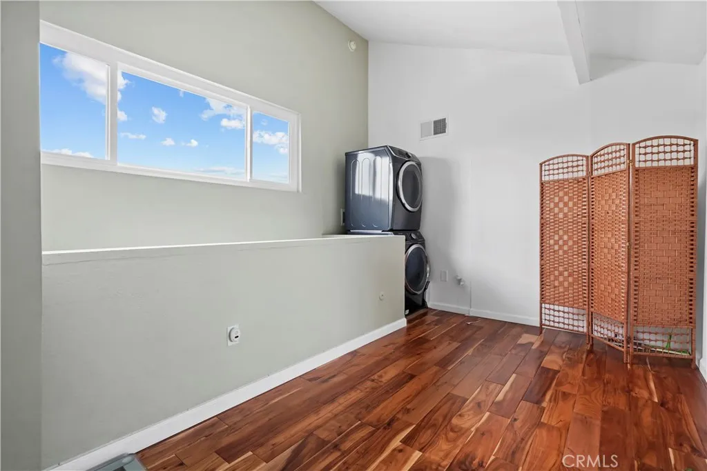 Gorgeous upgraded 2 + 2 condo plus LOFT located in a gated community. This light-filled second-floor end unit features a versatile loftideal for a creative studio, home office, or flex space. The open floor plan showcases brand new windows, recessed lighting, and beautiful hardwood floors throughout. High vaulted ceilings enhance the sense of space and openness throughout. The kitchen is equipped with granite countertops and modern appliances, perfect for everyday living and entertaining. Primary bedroom features 2 closets, en-suite bathroom and a private balcony. Additional highlights include in-unit washer and dryer, two covered tandem parking spaces behind a security gate, and a well-maintained complex with a pool. Community consists of just 28 units. Low HOA dues.Truly a one-of-a-kind opportunity!