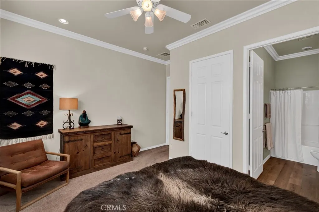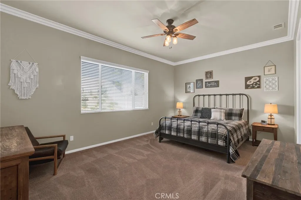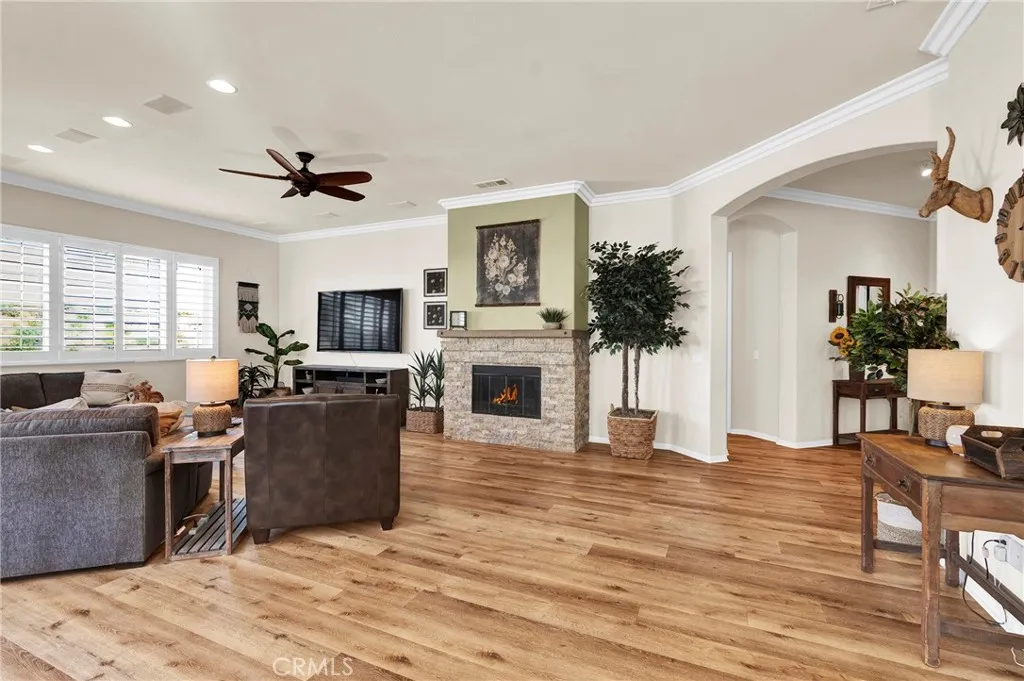 IMMACULATE 'EMERALD' Model (One Story 2,127 Sq ft - 2 Primary BRs - 3 BA + Den/Office) located in the Luxury 55+ Active Adult Community of Solera at Oak Valley Greens. Features and Upgrades include: Beautiful & Neutral LVT Flooring; Crown Molding; Plantation Shutters; Great Room Concept with Open ENTERTAINER'S kitchen featuring: Super Attractive RE-DONE CABINETRY, Large Kitchen Island w/Storage, Custom Backsplash, LOTS of Counters & Cabinets and Double Ovens; A Cozy Fireplace in Living Room; Custom Fans & Lights throughout Home; Separate Laundry Room with Storage, Pantry & Utility Sink; Very Private Yard with Covered Sitting, Garden & Grassy Areas. Price includes Refrigerator, Washer & Dryer - Attractive Furniture is Available (Not included). Solera at Oak Valley Greens offers a Great Clubhouse; Many Social Clubs and Activities to meet New Friends; Indoor Jogging track, Fitness center, Tennis courts, Pool/spa, Library; Bocce Ball and Billiards. The Solera 55+ Community has a Picturesque Mountain Backdrop, and is Freeway Close (I-10) - A Short distance to fabulous Shopping (Cabazon or Palm Springs); Casinos; Golf at Oak Valley Greens; Medical Facilities Close by & a short drive to the Charming City of Redlands to the west or Palm Springs to the East. If you're looking for an UPSCALE 55+ Community, you won't want to miss the Ideally Located Community of SOLERA at Oak Valley Greens.