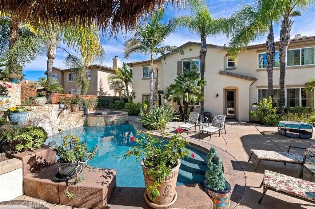Start checking the boxes because this one might just have it all! This upgraded and meticulously maintained home offers a spacious and well designed floor plan with great amenities and a back yard paradise. The upgraded kitchen features all stainless appliances including a double convection oven, large center island, walk-in pantry and loads of cabinets and counter space. On one side the kitchen opens to a family room with an inviting fire place. On the other side of the kitchen the butler's pantry leads into the formal dining room with french doors leading into the backyard. Off of the dining room is a cozy sitting room. There is a downstairs bedroom with a walk-in closet, full bath and a large separate laundry with a sink and built in cabinets. There is direct access to both a double and single car garages. Upstairs is the primary bedroom with an attached sitting area and fireplace. The master bath is stunning with an over-sized walk-in shower, dual walk-in closets, double vanities and a large soaking tub. there are two bedrooms with a jack n jill bath and another bedroom with it's own full bath. The bonus room would make a great game/party area or a quiet retreat for the family. OK, now for the back yard: Stunning pool with water features and attached spa, built in outdoor kitchen with grill, sink and refrigerator, firepit sitting area and plenty of room left over for sitting and relaxing. Landscaped yards front and back. House was just recently painted inside and out, newer garage doors and openers, rain gutters, new exterior lighting and radiant solar heating for the p