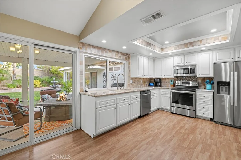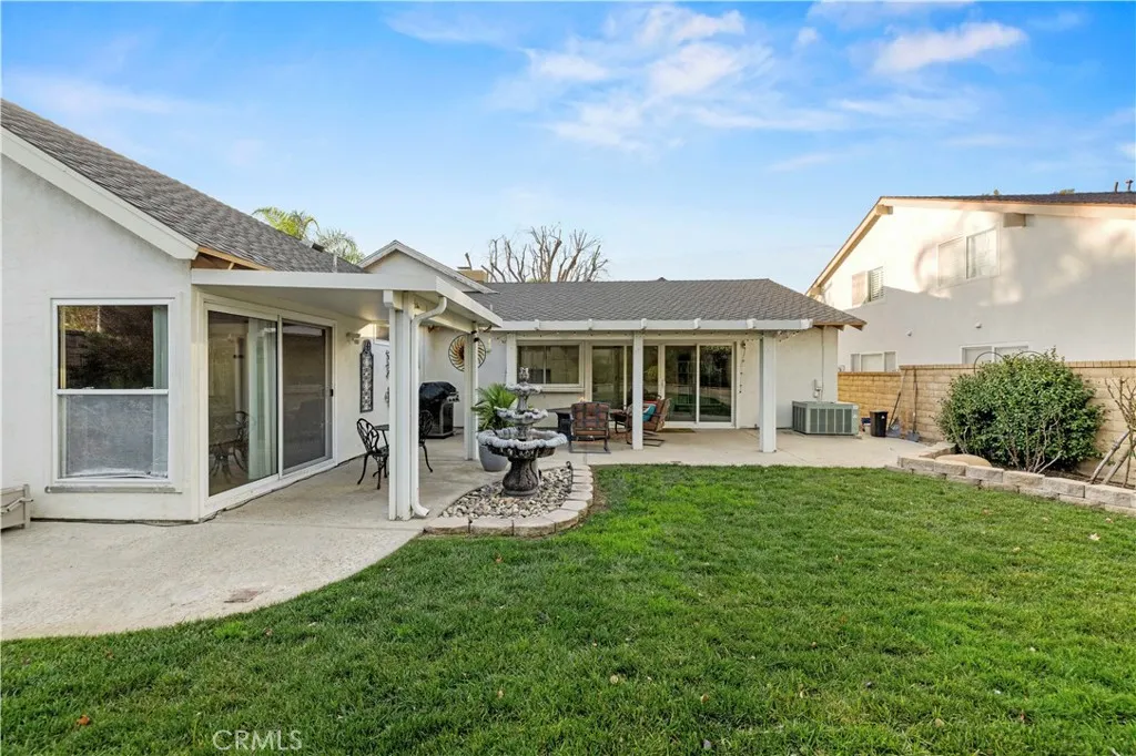 CHARMING VALENCIA HILLS SINGLE-STORY HOME! Welcome to this highly sought-after La Quinta model, offering 3 bedrooms, 2 bathrooms, and 1,769 sq. ft. of comfortable living space. From the moment you enter, youll be drawn to the high vaulted ceilings, open-concept layout, and abundant natural light that create a bright and welcoming atmosphere. The spacious living room features a gorgeous fireplace that serves as a stunning focal point - perfect for both everyday living and entertaining. The kitchen has been tastefully updated with granite countertops, travertine backsplash, recessed lighting, and stainless-steel appliances. Throughout the home, youll find new flooring in all bedrooms, updated bathrooms, and fresh interior paint, giving the property a clean, move-in-ready feel. Additional upgrades include copper piping, a new water heater, newly installed rain gutters, and an upgraded electrical panel. Step outside to a beautifully landscaped backyard featuring a covered patio and putting green - a true must-see and an ideal space for relaxing or entertaining. Valencia Hills HOA amenities include a community pool, clubhouse, park, and scenic paseos. Conveniently located near shopping, dining, and with easy freeway access, this home is also within highly desirable school zoning, features a low HOA, and has NO Mello-Roos. Schedule your private showing todaythis one wont last!