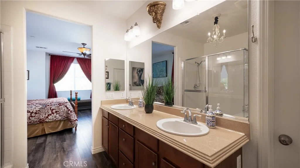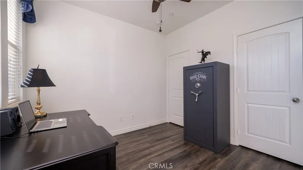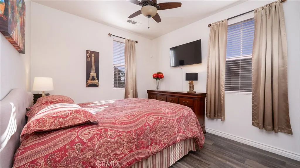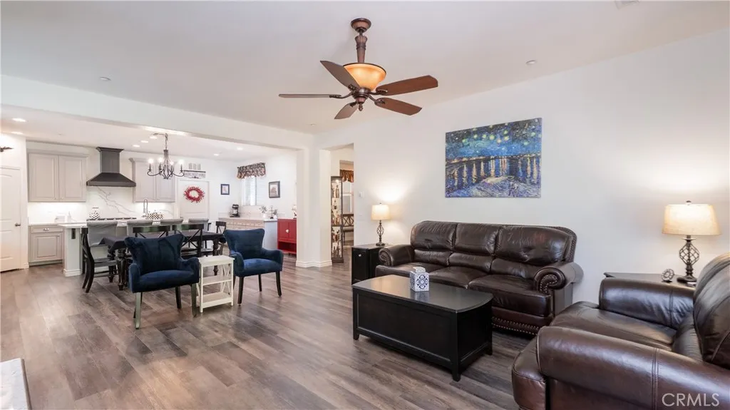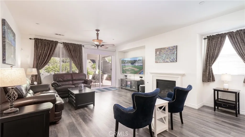This beautifully upgraded single-story home is located in the desirable Coyote Canyon neighborhood of North Fontana and sits on a large corner lot. Offering over 2,200 square feet of living space, this 4-bedroom, 2.5 bath home features fresh interior and exterior paint and luxury vinyl plank flooring throughout, creating a light, bright, and welcoming feel. The inviting front courtyard includes a fountain and seating area, perfect for relaxing or greeting guests. Inside, enjoy high ceilings, abundant natural light, and a warm family room with a ceiling fan and a fireplace. The formal dining room offers a lovely view of the backyard, making it ideal for gatherings. The fully remodeled kitchen is a standout, featuring brand-new soft-closing cabinets and drawers, quartz countertops and backsplash, a large farm-style sink, and all-new stainless steel appliances with Smart controls. A 5-burner cooktop with a commercial-grade range hood, along with a butler's pantry offering extra workspace and storage, completes this impressive space. The spacious primary bedroom includes a double-door entry, a ceiling fan, and bright natural light. The primary bathroom offers dual sinks, an oversized walk-in shower, and a deep soaking tub designed for pure relaxation. Three additional bedrooms feature ceiling fans, mirrored closet doors, custom window coverings, and ample closet space. Additional highlights include an indoor laundry room with a utility sink and new quartz countertops, a finished two-car garage with custom flooring, cabinets, ceiling fans, and a workspace, a Ring home security s