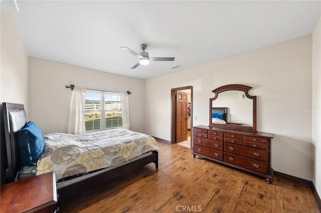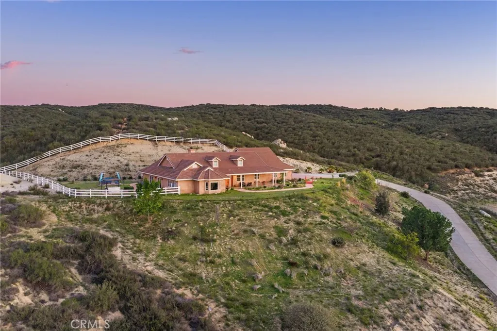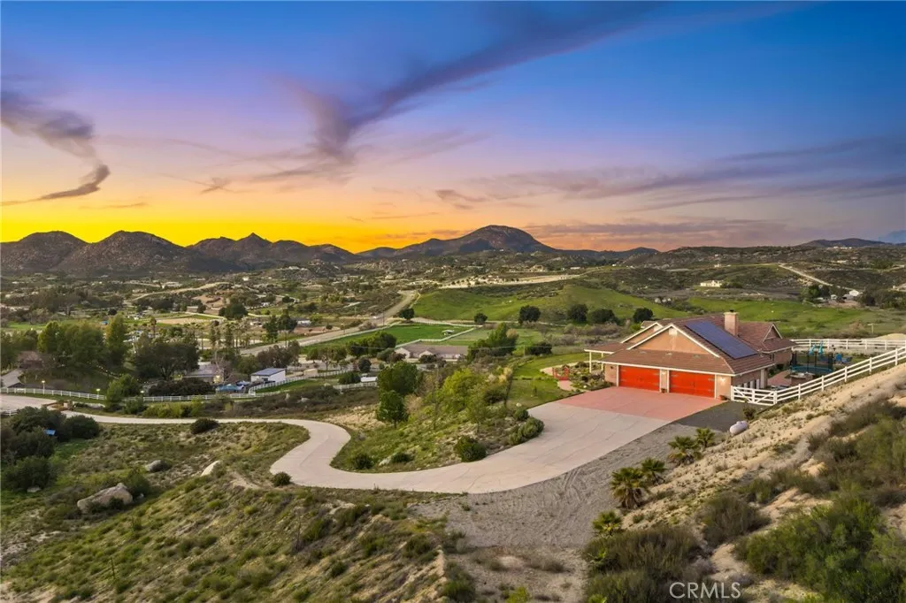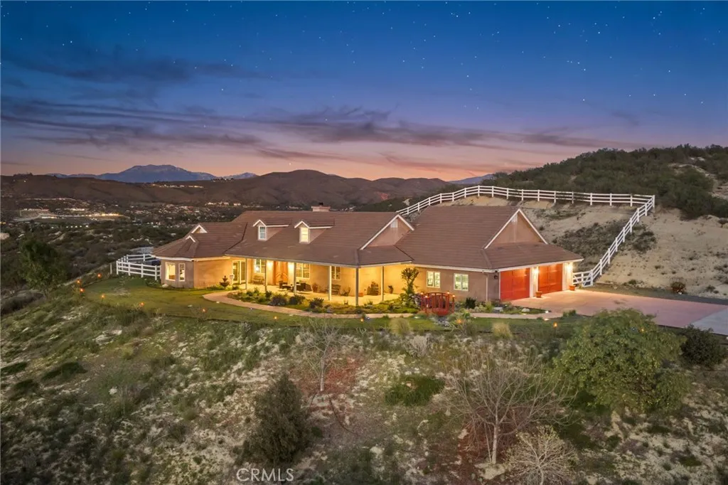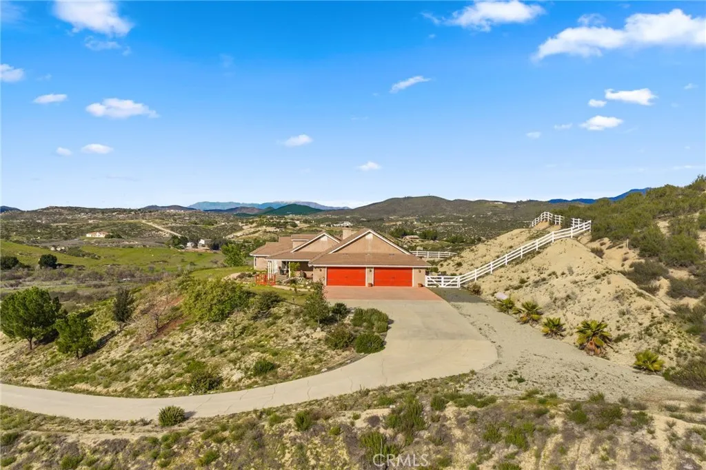 Panoramic Views | 3 Bed + Oversized Bonus Room | Oversized 4-Car Garage... Set in the heart of Temecula Wine Country, this stunning single-story estate offers some of the most breathtaking panoramic views the area has to offer. Built in 2004 and spanning nearly 3,000 square feet, the home features 3 bedrooms plus an oversized enclosed bonus room with direct backyard access perfectly suited as a 4th bedroom, guest suite, or home office and 2.5 bathrooms. The open common areas showcase vaulted ceilings with exposed wood beams, creating a dramatic yet inviting atmosphere, anchored by a massive fireplace in the family room. The primary suite is thoughtfully positioned to capture the sweeping views and opens toward the backyard, offering a peaceful retreat. Two additional bedrooms are connected by a convenient Jack-and-Jill bathroom. Situated on 5 acres, the property is gated and fully fenced and includes a separate graded pad offering endless possibilities ideal for an ADU, workshop, barn, or horse facilities. An oversized 4 car garage provides ample room for vehicles, storage, or recreational toys. Designed for efficiency and comfort, the home features a 38-panel solar system with 4 batteries, a whole house water filtration system, water softener, and a recently replaced electric Performance Platinum water heater. Outdoors, relax in the above-ground spa with custom LED lighting, perfectly positioned to take in the iconic Wine Country sunsets. With unmatched views, thoughtful upgrades, and incredible potential both inside and out, this property is a rare opportunity to create y