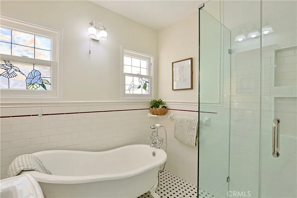 PRIME LOCATION HISTORIC HOME WITH MODERN UPGRADES! Save on property taxes with this registered historical landmark under the Mills Act, reduce energy costs with solar panels, and explore potential income opportunities with the ability to construct multiple ADUs. Situated on a large 7,000 sq ft lot with rear vehicular access, ideal for RV or boat parking. Known as the Glen Dunkle House #54, this 1923 home is located in the Redwood Avenue Historic Area and registered with the Brea Historical Society. The 2-bedroom residence blends preserved architectural details with practical updates and offers flexibility for future expansion or additional income. Interior features include a tiled fireplace, new laminate flooring, fresh paint, stained glass windows, cedar-lined closets, ceiling fans, and abundant natural light. The bathroom includes a clawfoot tub, walk-in shower, and classic tile finishes. The kitchen offers butcher block countertops and island, ample cabinetry, and connects to an indoor laundry and pantry. A covered outdoor room provides approximately 200 sq ft of additional usable space. The backyard includes fruit trees, a pond, stone walkways, storage sheds, and access to a detached two-car garage with potential for conversion to a studio, office, expanded garage, or ADUs. Additional upgrades include new AC and ducting, rear gated access, and solar panels. Conveniently located near Downtown Brea, Brea Mall, shopping, dining, civic amenities, and top-rated schools.