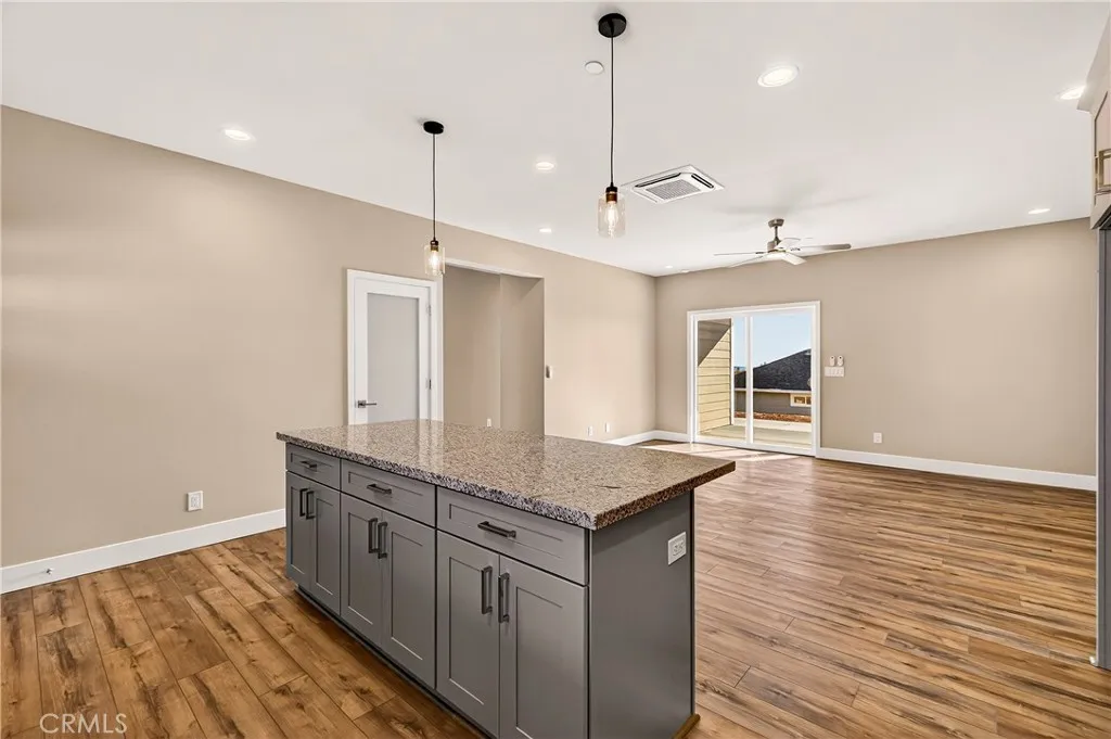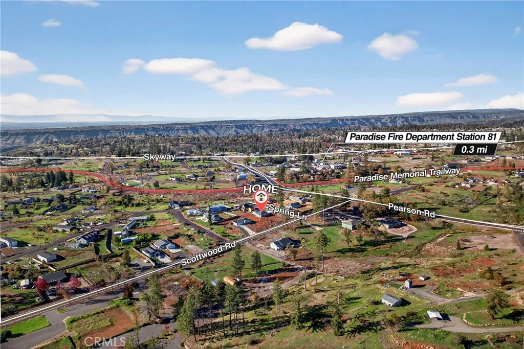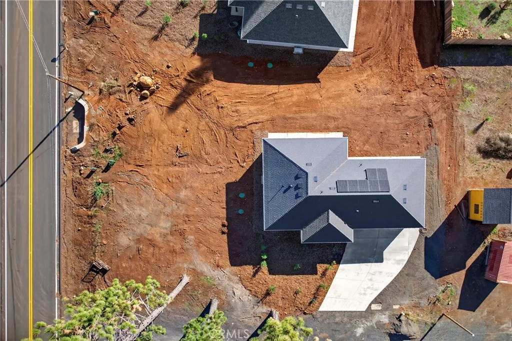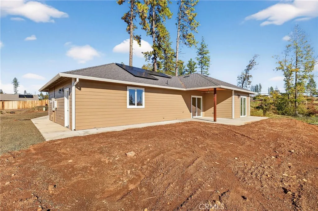 Fantastic Central Paradise location for this 2025 Custom Home, built by Frost Construction a long time Paradise builder. Current Insurance Quote $1,044.70 NO FAIR PLAN! The home offers Owned Solar 3.08 KW system, 7 panels with microinverters. The .32 Acre lot offers space for Boat, Trailer or R.V. parking with electricity. Possible Seller carry! Landscaped front yard on drip system. Boasting a generous 1,021 square feet of living space, this home features top-notch craftsmanship and modern amenities. Upon entering, you'll be greeted by a charming 96 square foot covered front porch with a craftsman-style front door and custom shutters. Step inside to discover an open floor plan that seamlessly connects the living room, kitchen, and dining area. The kitchen is a chef's dream with granite countertops, stainless steel appliances, recessed LED and pendant lighting, and a stylish island for added convenience. The primary bedroom is a serene retreat with crown molding, a slider leading to the covered patio, and a well-appointed en-suite bathroom featuring granite counters and a step-in shower. The guest bedroom also offers crown molding and access to a sleek guest bathroom with granite countertops and a tub/shower combination. The home features gorgeous Vinyl Plank flooring throughout. Outside, you'll find a spacious 114 square foot covered patio with recessed lighting and a ceiling fan, perfect for outdoor entertaining. Additionally, the oversized two-car garage, measuring 23'5" wide by 25'10" deep, includes a laundry area. Plenty of space for a boat, trailer, or RV parking. R.V.