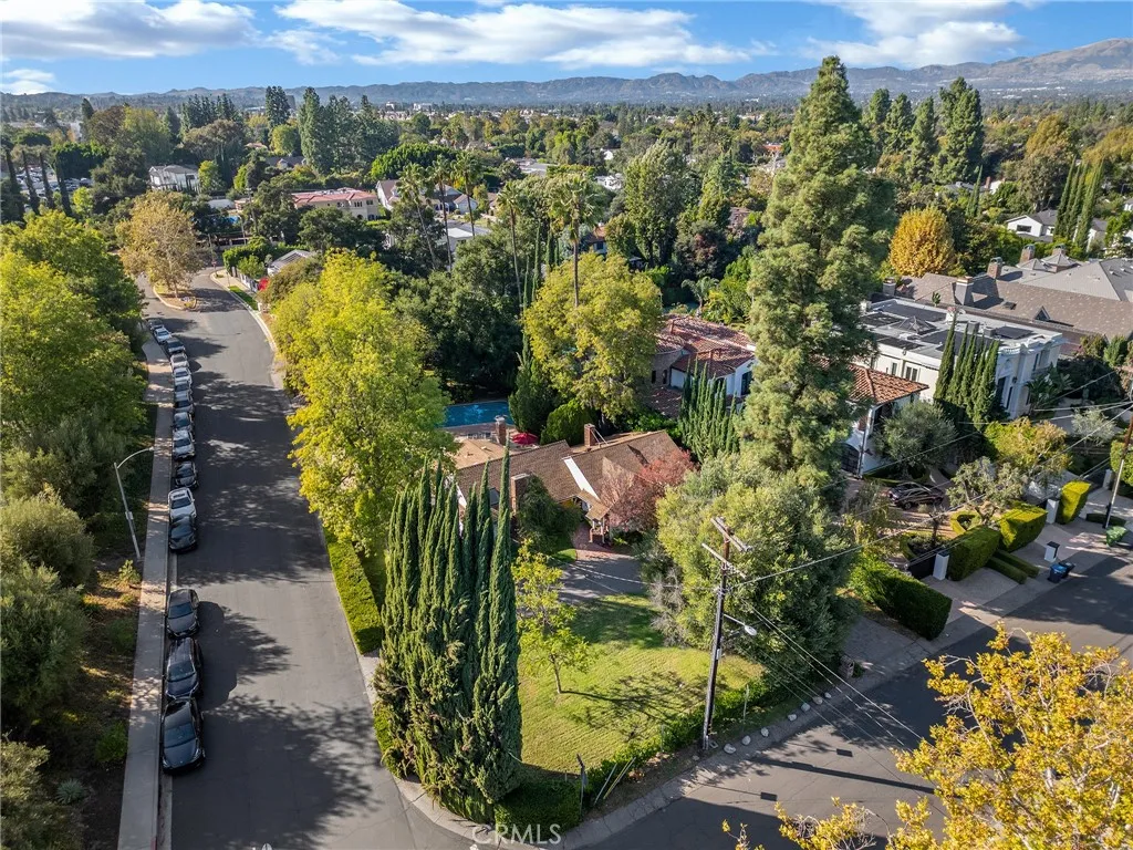 On the market for the first time in 50 years, this classic single-story ranch residence in prime Amestoy Estates sits on an expansive 17,790 sq ft lot and offers 2,235 sq ft of living space, surrounded by multi-million-dollar estates. Deeply set back from the street behind a dramatic circular driveway and framed by mature trees, the property delivers exceptional privacy and presence. Inside, the flexible layout features three bedrooms plus an office, two bathrooms, a welcoming living room with wet bar and fireplace, and a spacious family room highlighted by a brick fireplace, vaulted beamed ceilings, and skylights that fill the home with natural light. The kitchen and adjacent dining area showcase large picture windows overlooking the lush rear grounds, seamlessly blending indoor and outdoor living. The grounds are a true highlight, offering striking curb appeal and a park-like setting with grassy areas, newer pavers, bougainvillea hedges, and a sparkling swimmers pool. Whether reimagined through renovation or transformed into a custom luxury estate with ADU potential, the property presents a rare canvas with endless possibilities. Just a short stroll from Encino Commons, top dining, and shopping, this is a rare opportunity to create a dream compound in one of Encinos most coveted neighborhoods.