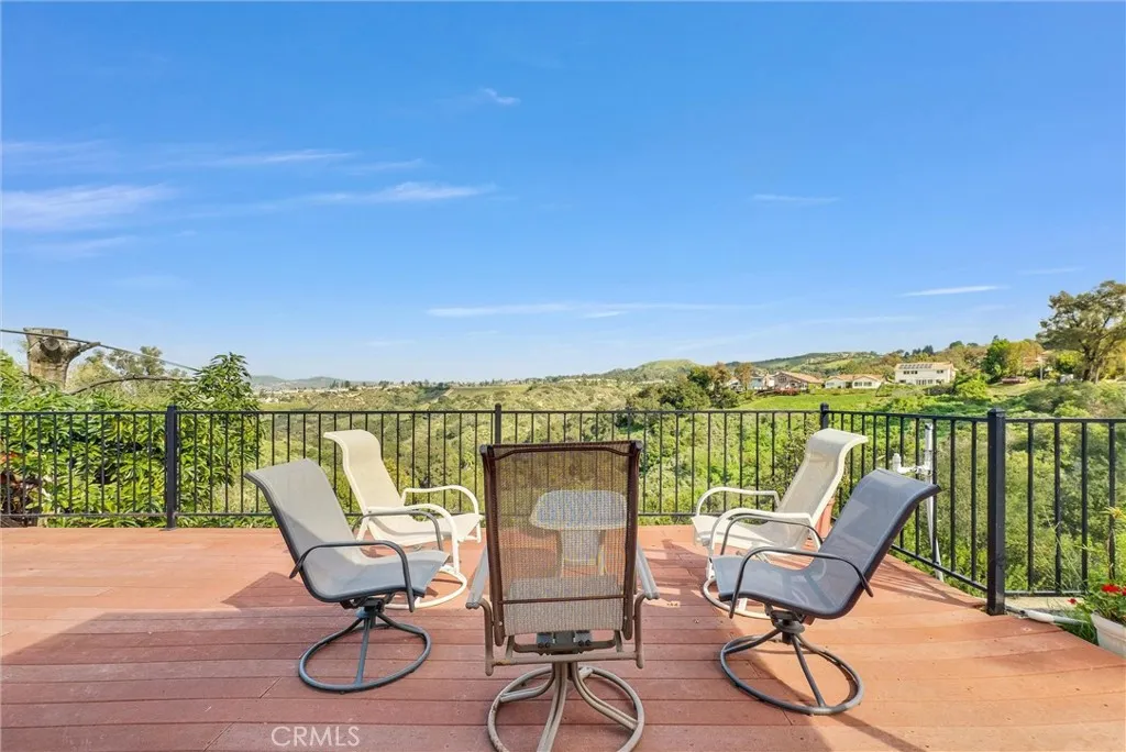 This expansive Anaheim Hills residence offers 45 bedrooms and 4 bathrooms, set in a quiet no-HOA enclave with no rear neighbors and breathtaking panoramic views of the canyon, mountains, and nature reserve. Enjoy peaceful sunrises, exceptional privacy, and a highly desirable hillside setting. Designed for entertaining and everyday comfort, the home features a large great room ideal for a home theater, two wet bars, seamless indoor-outdoor living, a wrap-around view deck, multiple patios, indoor and outdoor BBQ areas, and a private spa retreat. The flexible layout includes a permitted downstairs primary suite with beautiful views, a second primary bedroom upstairs, and two office spacesperfect for multi-generational living or working from home. Bright living areas capture natural light and scenic outlooks throughout. Additional highlights include low-maintenance landscaping, automatic attic ventilation, extra storage shed, built-in garage cabinetry, newer roof, updated HVAC and water heater, water softener and filtration system, and direct access toward canyon trails. Layout note: Tax records reflect 4 bedrooms and 3 bathrooms; the home now offers 4 bathrooms by permit, with a potential 5th bedroom conversion without permits. Buyer to verify. A rare opportunity to own a private view home offering space, flexibility, and tranquil Anaheim Hills living.