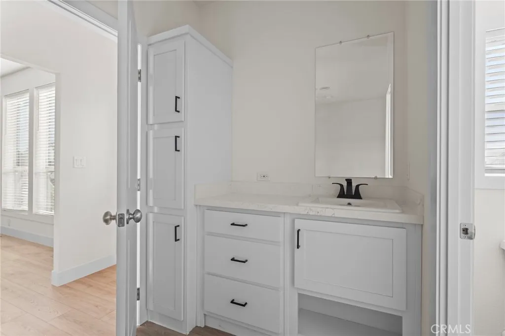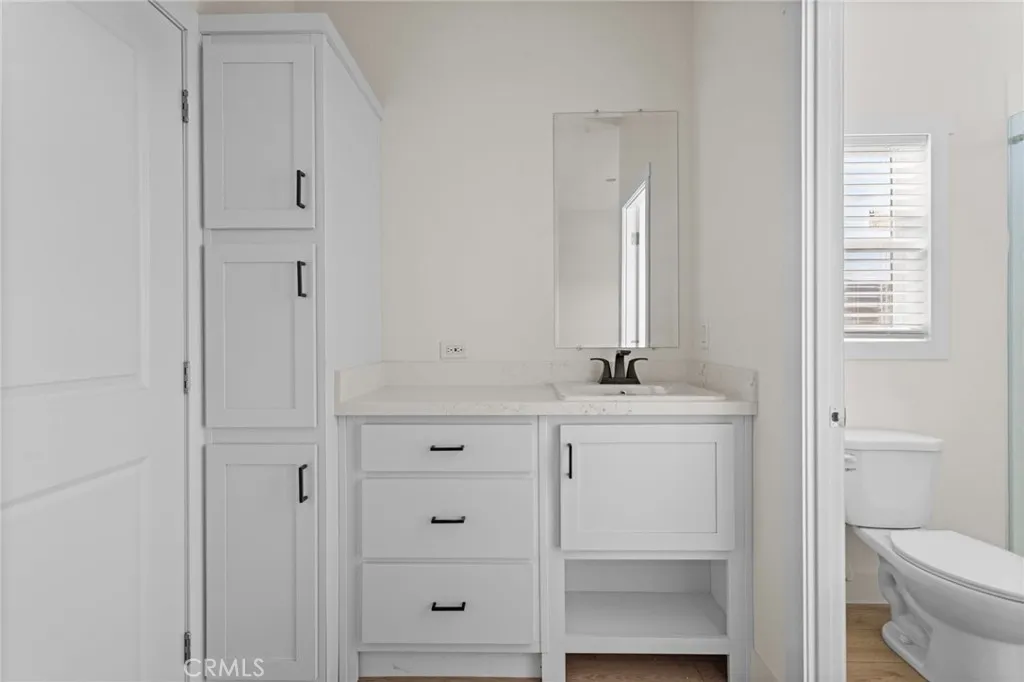 This brand-new 2025 2-bedroom, 2-bathroom manufactured home offers modern comfort and thoughtful design in a convenient location in Jurupa Valley. The home features an inviting open floor plan filled with natural light and showcasing clean, contemporary finishes throughout. The spacious living area seamlessly connects to the kitchen, creating an ideal layout for daily living and entertaining. The kitchen boasts stylish Clover shaker cabinetry, quartz-style countertops, stainless-steel Whirlpool appliances, and ample cabinet and prep space. The primary bedroom suite serves as a private retreat and includes an ensuite bathroom featuring a vanity-style sink that provides ample counter space and additional storage, along with modern fixtures and finishes. The secondary bedroom is well-sized and located near the guest bathroom, making it perfect for guests, family members, or a home office. Additional features include recessed lighting, dual-pane windows, Mohawk laminate flooring, and interior laundry hookups for added convenience. This move-in-ready home is situated within a well-maintained community and is conveniently located near shopping, dining, and major commuter routes, offering comfortable, low-maintenance living in the heart of Jurupa Valley.