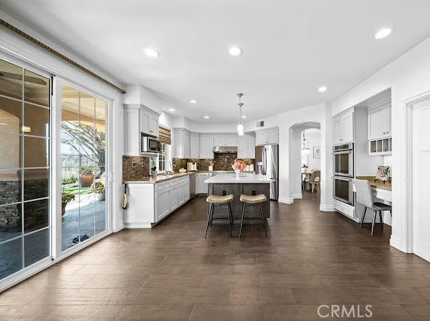 View! View! View! Welcome to this stunning Mediterranean-style home tucked inside Altadenas exclusive guard-gated La Vina community. This spacious two-story residence offers 5 bedrooms and 4.5 bathrooms across approximately 3,348 square feet of elegant living space, designed for both comfortable family living and upscale entertaining. The grand entryway greets you with soaring ceilings and a sweeping staircase, leading into refined formal living and dining rooms. The open-concept kitchen flows effortlessly into a warm family room with a fireplace, and features a center island, a wine cellar, and direct access to a serene patio with panoramic canyon, city, and mountain views. Ideal for multi-generational living, the home includes a first-floor En-suite bedroom, while upstairs boasts four additional bedroomsincluding a luxurious primary suite, spa-like bathroom, walk-in closet, and a private balcony with stunning vistas. Additional highlights include hardwood flooring, new interior paint, new water heater, new landscaping, HVAC (2016), high-end bidet toilets, whole-house water filtration system (2019), security system, laundry room, and an attached two-car garage. The La Vina community offers resort-style amenities such as a sparkling pool, playground, and hiking trails surrounded by nature - all just minutes from Old Town Pasadena, Rose Bowl, and major freeways. Experience peaceful hillside living with the convenience of city access - this home truly has it all.