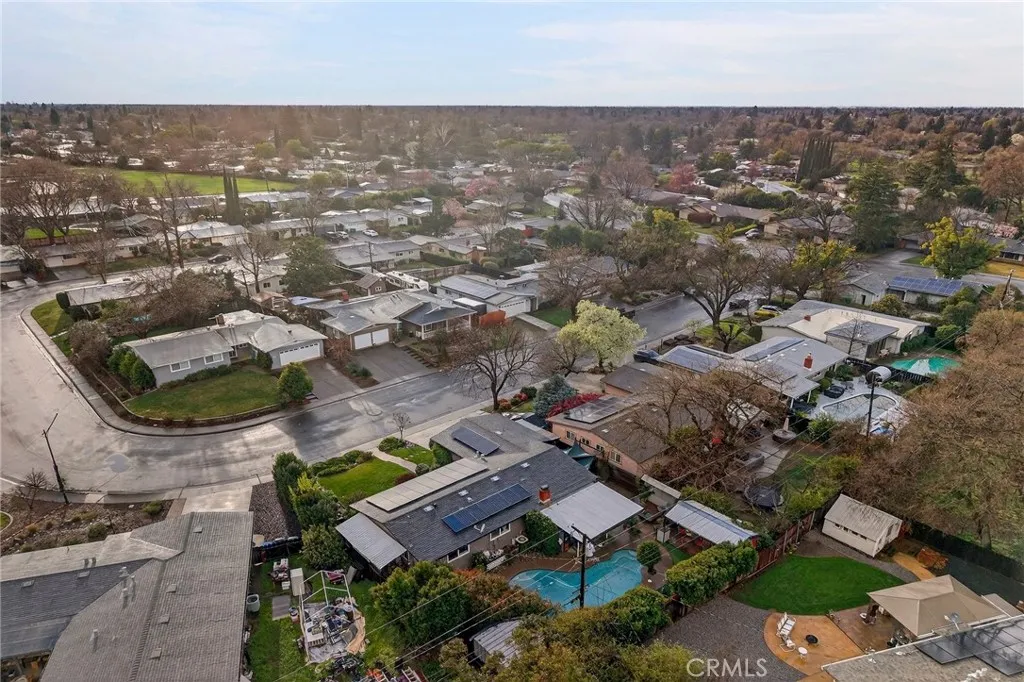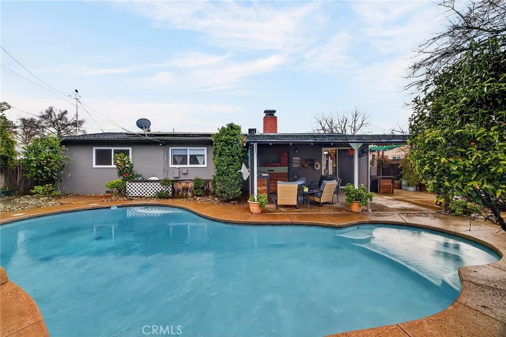 This move-in ready home offers the perfect blend of comfort, character, and unforgettable outdoor living. Pride of ownership is evident throughout, with thoughtful updates including modern fixtures, updated appliances, and beautifully remodeled bathrooms that add style and function. Ideally located just half a mile from Sierra View Elementary School, approximately one mile from Bidwell Park, and about two miles from Pleasant Valley High School, this home combines comfort with exceptional convenience. Grocery stores, restaurants, and everyday amenities are all nearby, making daily life effortless. Step into a backyard designed for making memories. Lounge by the pool, relax under the covered patio with built-in seating and outdoor TV, or enjoy the convenience of an outdoor shower. Host gatherings with ease thanks to the cantina-style bar featuring a built-in BBQ and refrigerator, a brick pizza oven, and a built-in fire pit that sets the scene for cozy evenings under the stars. Low-maintenance turf keeps the yard looking green year-round, while lush landscaping creates a private, inviting atmosphere. Pet owners will appreciate the fenced and gated dog run along one of two covered side yards, and a separate small metal building, currently set up as a home gym, offers flexible space for workouts, hobbies, or additional storage. A two-car garage with built-in storage adds even more functionality and organization. Inside, the home welcomes you with warmth and charm, highlighted by a cozy wood-burning fireplace and a layout that has been lovingly cared for over the years. While the