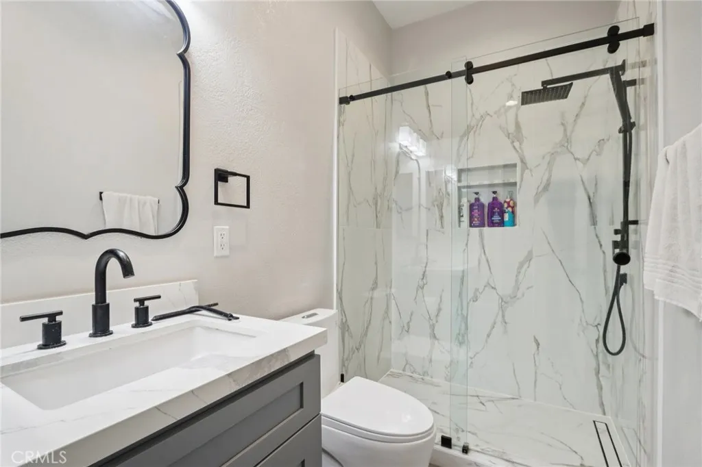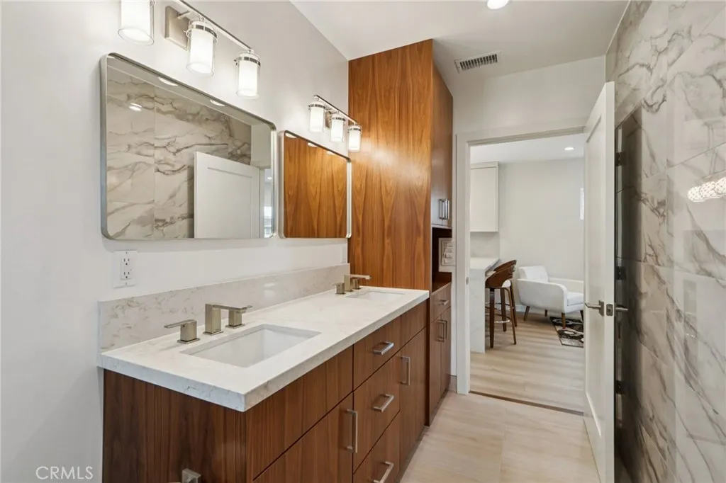 This one may sound like a unicorn. Spoiler alert: its very realand its sitting on half an acre in Reseda. Completely remodeled from head to toe, this property delivers space, style, and flexibility in a way thats getting harder to find. The 1,873 sq ft single-story main house is light, bright, and designed for real life. A welcoming family room flows into an open great room where the kitchen, dining, and living areas come together effortlesslyperfect for everyday living or hosting without trying too hard. The kitchen is equal parts polished and practical, featuring quartz countertops, stainless steel appliances, and a large island that anchors the space. Laminate flooring runs throughout, with clean tile finishes in the kitchen and bathrooms. Three spacious bedrooms include a serene primary suite with an en-suite bath offering a separate tub and shower, complete with rainfall showerhead and handheld. A stylish hall bath rounds out the main home. Then comes the mic drop: a brand-new, fully furnished, detached 2-story ADU spanning nearly 1,200 sq ft with 2 bedrooms and 2 bathrooms. Modern, fresh, and beautifully finished with waterfall quartz countertops, stainless steel appliances, and sleek finishes. Ideal for extended family, guests, or income potential that actually feels like a smart move. Outside, the massive flat, usable lot feels like your own private retreatwalking paths wind through lush landscaping, gardens, and fruit trees throughout. Add an outdoor patio, BBQ area, and sports court, and weekends suddenly book themselves. Every system has been upgraded: new roof,