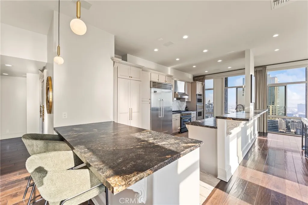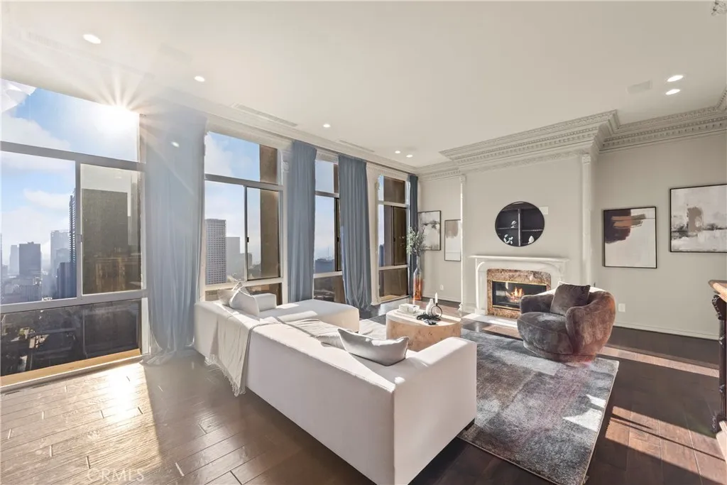 Luxury Live Auction! Bidding to start from $1,100,000! High above the cultural heart of Downtown Los Angeles, this Penthouse at Bunker Hill Tower occupies a rare vantage pointan aerie suspended on the 32nd floor, where the citys skyline becomes both backdrop and art. Recently refreshed in a refined neoclassical palette, the residence blends timeless architectural lines with the openness and light only a true penthouse can offer. Inside, soaring ceilings, exclusive to the top floor, create a sense of vertical drama. Soft architectural detailing, graceful moldings, and beautifully scaled rooms evoke an understated luxury not often found in contemporary high-rise living. Walls of glass pull the city inward, offering uninterrupted views that shift from morning clarity to evening glow. A thoughtfully composed floor plan provides two spacious en-suite bedrooms, two and one-half baths, and a library/den with a built-in wet bar, ideal for quiet study or intimate gatherings. The expansive living and dining areas invite both grand entertaining and elegant everyday living. An in-unit washer/dryer adds modern convenience rarely available in the building. Bunker Hill Tower is one of Los Angeles most enduring full-service addresses, offering an array of amenities more akin to a private resort: a 24-hour concierge, Olympic-size pool, spa, two fitness centers, wet and dry saunas, tennis and pickleball courts, lush outdoor spaces, BBQ areas, and a residents market and salonall seamlessly integrated into daily life. With all utilities included in the HOA, comfort and ease are woven into the