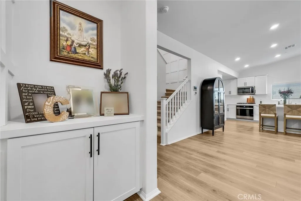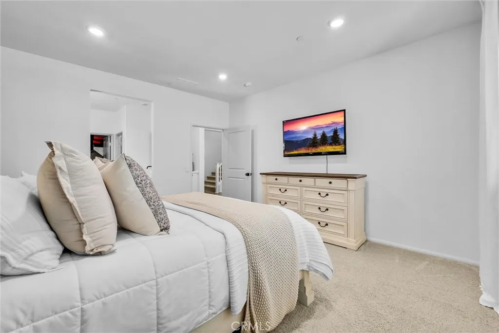 Welcome to this beautifully upgraded 5-bedroom, 3-bathroom home offering 2,537 sq ft of modern living space and a 3-car garage. Designed with an open-concept floor plan, this home seamlessly blends comfort and functionality. The main level features a spacious primary suite with a private ensuite bathroom, an additional guest bedroom, a full bathroom, and a convenient downstairs laundry room, ideal for multigenerational living or hosting guests. Upstairs, youll find a generous loft perfect for a media room, or play area, along with three additional bedrooms (including one with a walk-in closet) and a full bathroom. This home is equipped with premium Energy Efficiency appliances, HVAC, Tankless Water Heater, Garage equipped with solar vehicle charging capabilities, and SMART home features, including front door locks, smart-controlled air conditioning system, sprinkler system, garage doors, Deako smart lighting throughout, etc. The beautifully landscaped front yard offers great curb appeal, while the backyard is designed for entertaining with an Alumawood patio cover complete with built-in lighting and ceiling fans, perfect for relaxing or hosting gatherings year-round. This modern home truly has it allstyle, space, and smart functionality. ***Fully Owned and Paid Off Solar Panels***