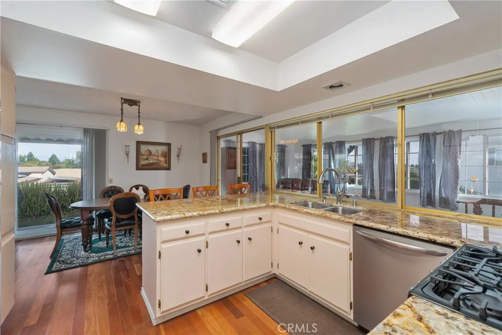 Welcome to this charming single-story 1 bedroom, 1 bathroom home located in the highly desirable 55+ Oceana community in Oceanside. This well-maintained residence offers comfortable coastal living just minutes from beautiful beaches, shopping, dining, and major freeways. This light and bright home features an open living and dining area, a functional kitchen with ample cabinet space and granite countertops and dedicated dining space. Brazilian hardwood floors add elegance and easy care to the house. The spacious primary bedroom is designed for comfort and convenience. Large glass doors allow plenty of natural light in the house and peek a boo views of the mountains. There is an enclosed sun room for added space. The bathroom has been tastefully remodeled making this home move in ready. The single-level floor plan provides easy accessibility, making it ideal for low-maintenance retirement living. Whether you are looking to downsize, purchase a vacation retreat, or enjoy an active and social senior lifestyle, this welcoming community features popular activities such as pickleball, water aerobics, golf, and group exercise classes.