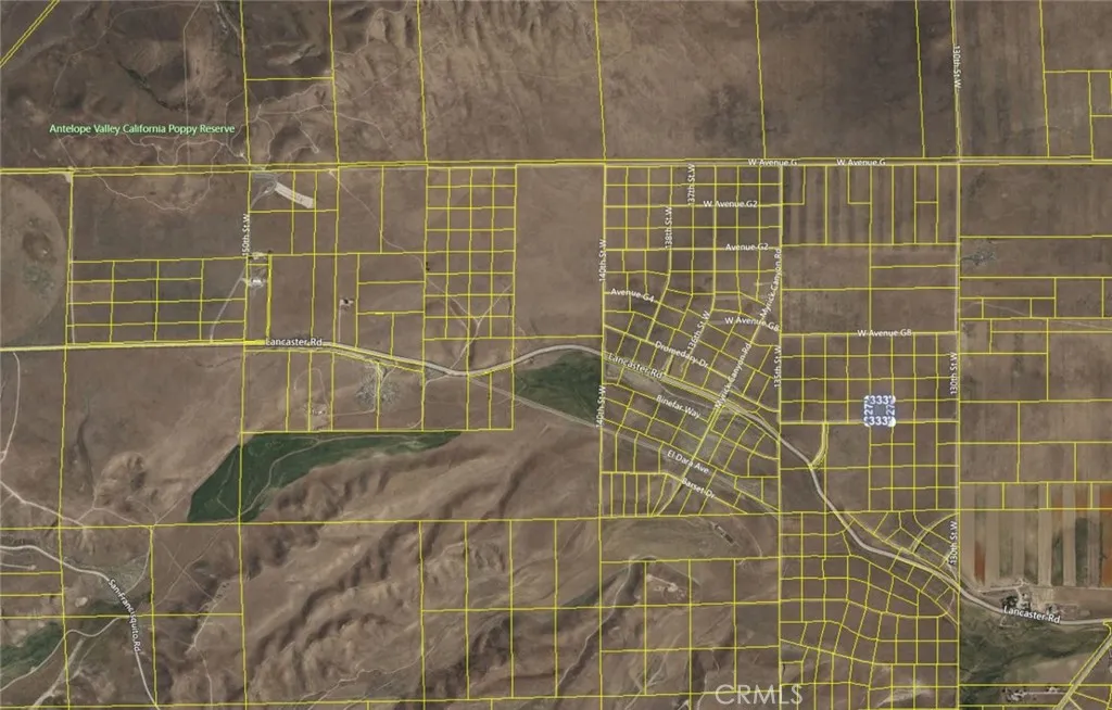 Unique and desirable land parcel! Located very close to the world-famous Poppy Reserve at the west end of the Antelope Valley, this 2.5-acre property is a unique offering that presents a wide variety of potential uses. Such uses include building a custom home surrounded by the beautiful poppies, installing a mobile home, creating a campground site, starting a small farm, using it as a photography location, etc. Perhaps build a structure that can be used for AirBnB, capitalizing on the tourism to the area? Or just sit back and enjoy the natural beauty of the area on your own plot of land. This parcel also sits on W Ave G-12 so it's easily accessible and usable without easements. It is also very close to paved Lancaster Rd, which connects to Ave I back into town. There are many possibilities with this property, and it is now available at an affordable price. Don't miss out!