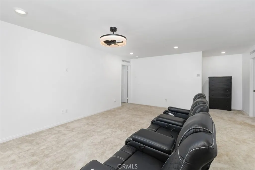 Welcome to Colt Ridge in Hemet move-in ready and beautifully designed! This two-story home offers 4 bedrooms, 3 full bathrooms, and approximately 2,710 sq. ft. of living space with a 3-car garage. An extended concrete driveway and inviting front porch create great curb appeal. The flexible floor plan includes a main-level bedroom and full bathroom, ideal for guests or multi-generational living. The main level features upgraded flooring, along with modern lighting and ceiling fan fixtures throughout. The spacious Great Room flows seamlessly into the open-concept kitchen with white cabinetry and a large walk-in pantry, and dining area. The kitchen features a large center island, granite countertops, stainless steel appliances, and ample cabinetry. Sliding glass doors lead to the backyard with a covered patio with 3 stylish outdoor lighting & fan fixtures, a generous concrete area, and low-maintenance artificial turf. Upstairs includes a spacious primary suite with an en-suite bathroom and walk-in closet, plus a versatile loft, two additional bedrooms, a full bathroom, and an upstairs laundry room. Additional features include a Tesla charging station in the garage, a water softener and filtration system, and an energy-saving solar system. Colt Ridge residents enjoy access to a recreation center, pool, spa, and BBQ areas. Conveniently located near Diamond Valley Lake, shopping centers, dining, and entertainment, including Village West Shopping Center, Hemet Plaza, Hemet Mall, and Soboba Casino. Move-in ready and offering space, functionality, and community amenities dont miss