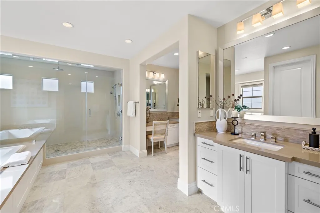 Boasting over 5,300 sqft of Thoughtfully Designed Living Space, this one-of-a-kind residence sits on a Premier Corner Lot, Offering Exceptional Privacy and Exclusivity. Designed for both Comfort and Entertaining, the home features an Exceptionally Spacious First Floor ideal for Flexible Living or Multi-generational use, along with the Rare Convenience of Dual Primary Suites one on each level. Gourmet Kitchen is equipped with Premium Appliances, a Walk-in Pantry, a Large Center Island, and A Separate Prep Kitchen for added functionality. Three Luxury Sliding Doors Create Seamless Indoor-Outdoor Living while Filling the home with an Airy, Light-filled Atmosphere. Professionally Designed Backyard is an entertainers retreat, complete with High-end BBQ Station, Jacuzzi, Mini Golf area, High-end motorized pergola with Automatic Roof and Storage Shed. Premium Upgrades include a first-floor GYM with Premium Mat Flooring, Motorized Blinds, Designer Ceiling Fans, Built-in Speakers, Security Cameras, and Fully Paid-Off Solar Panels. Plus access to resort-style Great Park amenities, including multiple pools, elegant clubhouses, tennis and basketball courts, sports fields, and expansive green parks offering a premier lifestyle of recreation and leisure.